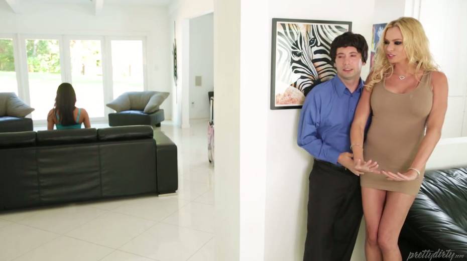 Brazilian chick Abby Lee Brazil and her blond GF are fucked by one horny stud