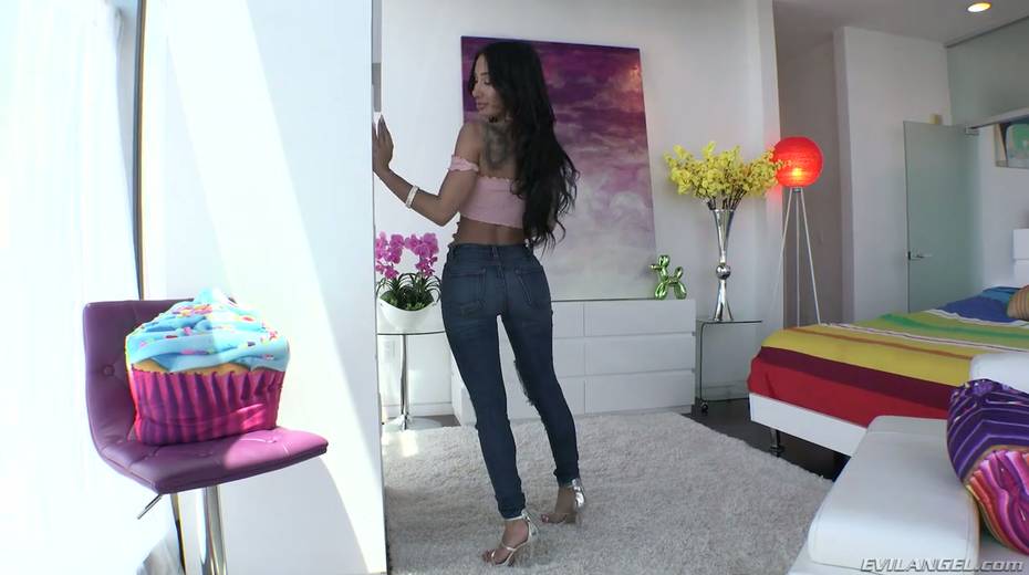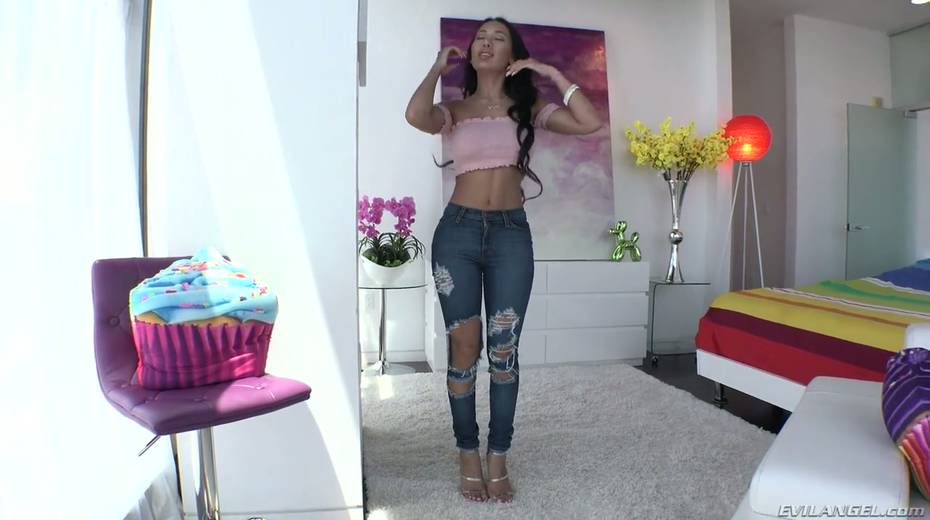 Perfectly shaped temptress Amia Miley gets oiled up and fucked hard
