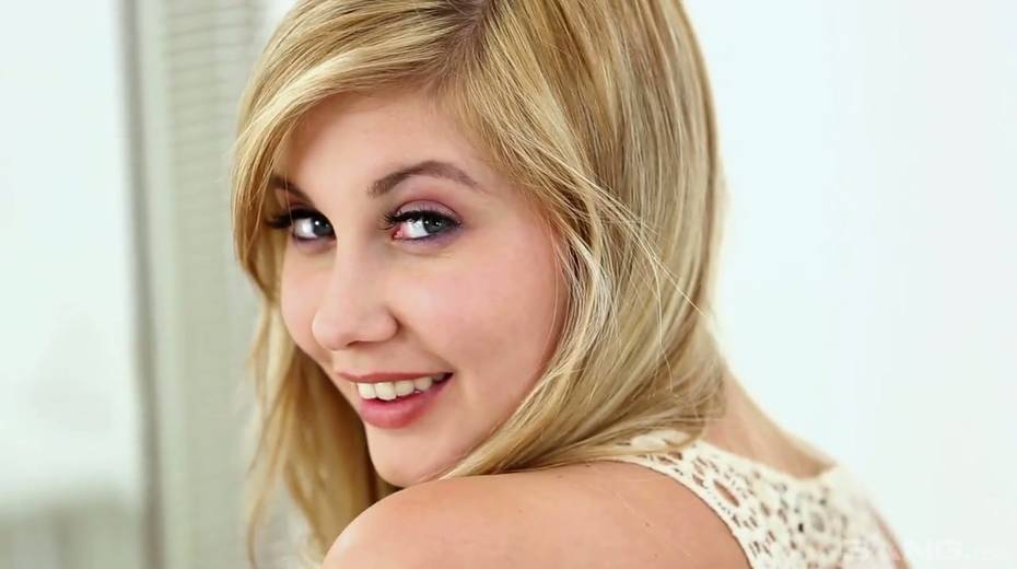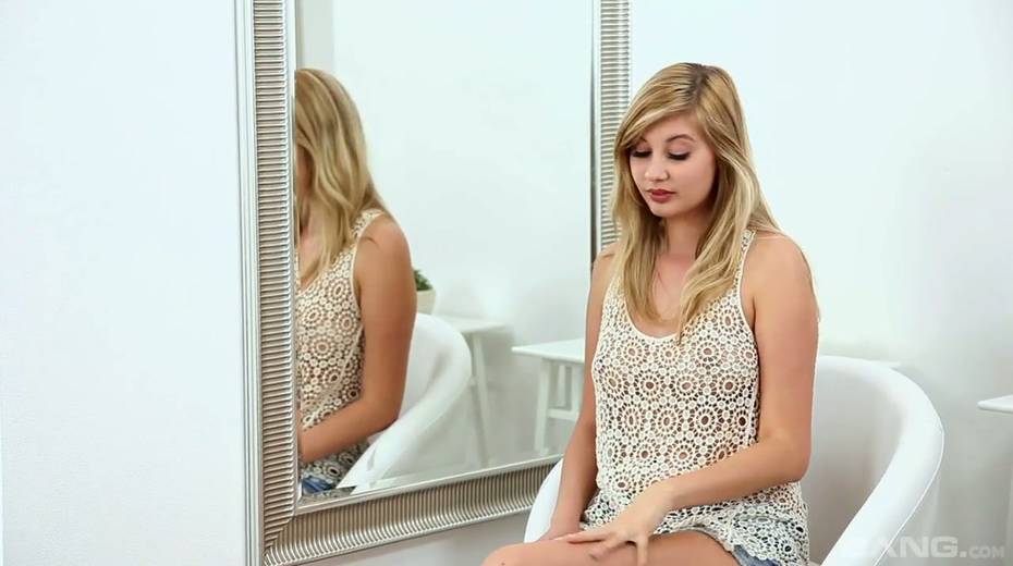 Beautiful creation Holly Anderson is masturbating her pretty pussy in front of the mirror