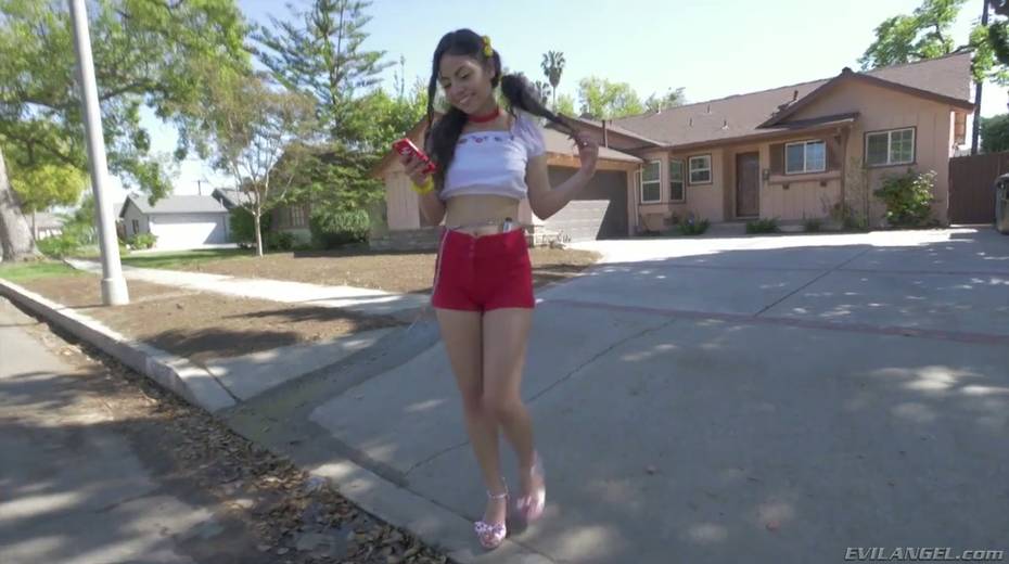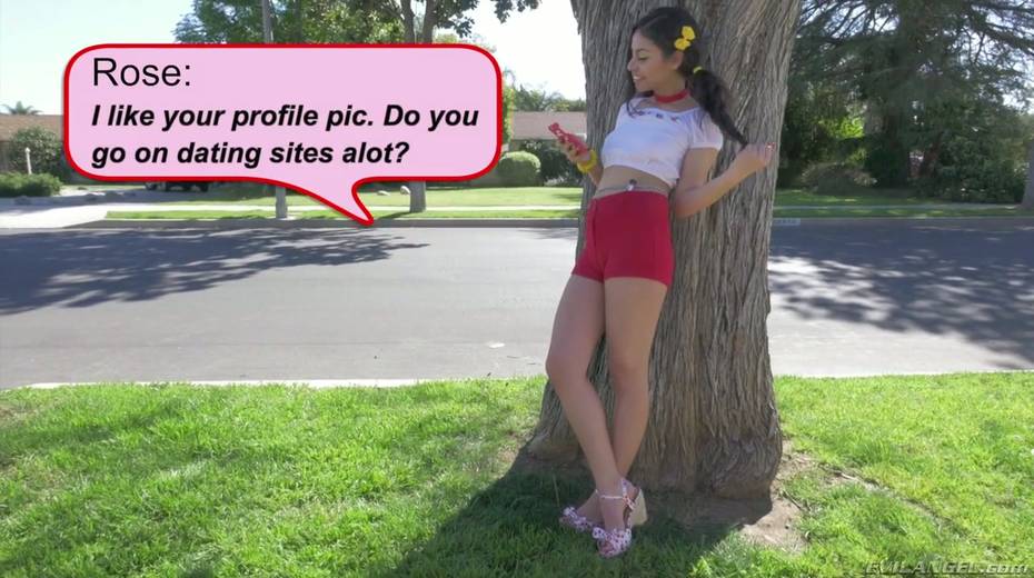 Yummy nextdoor chick Rose Darling gets acquainted with a huge dick of one dude form hookups site