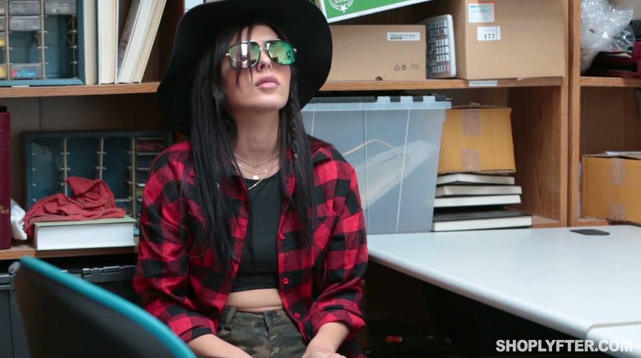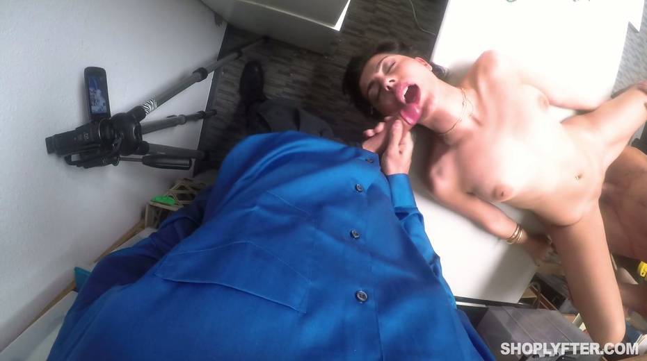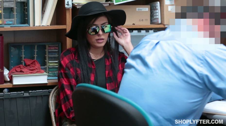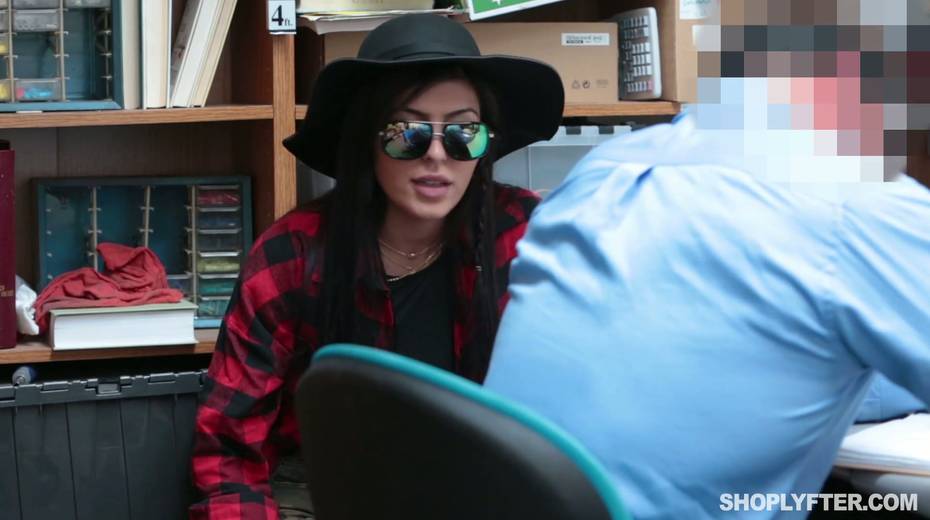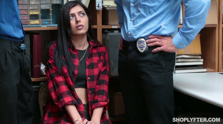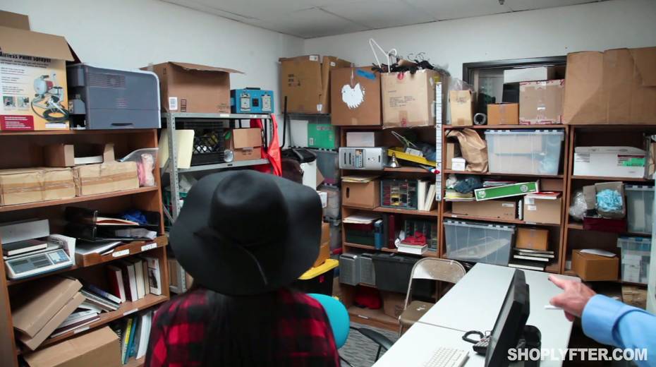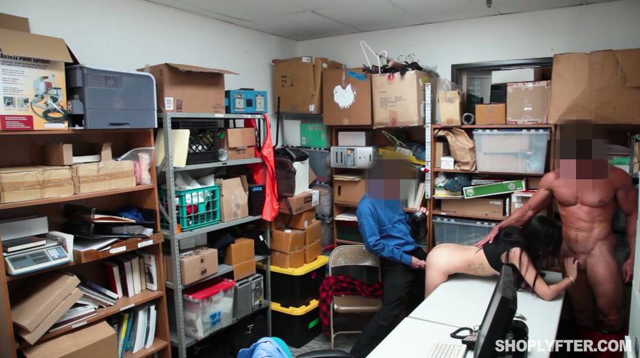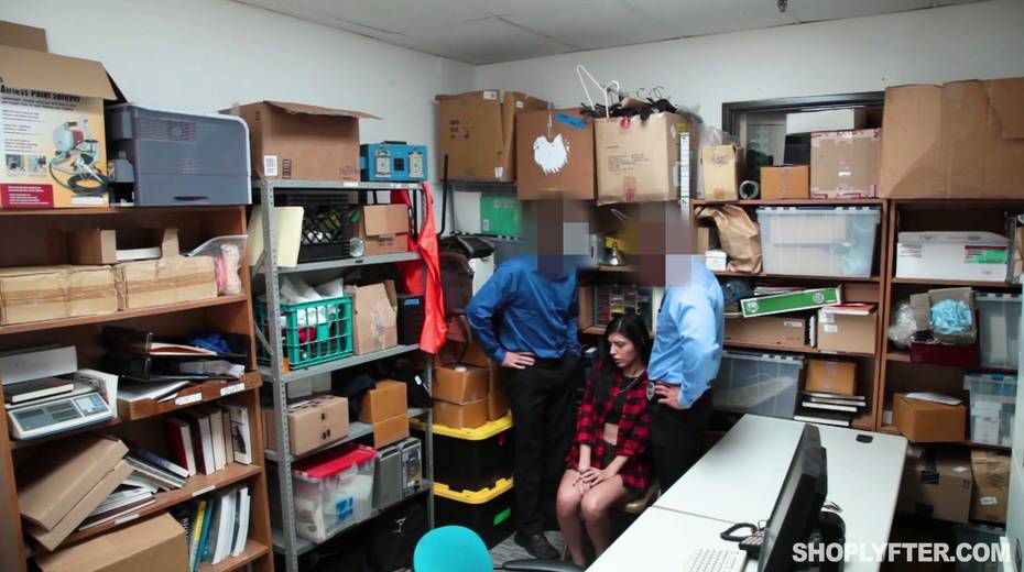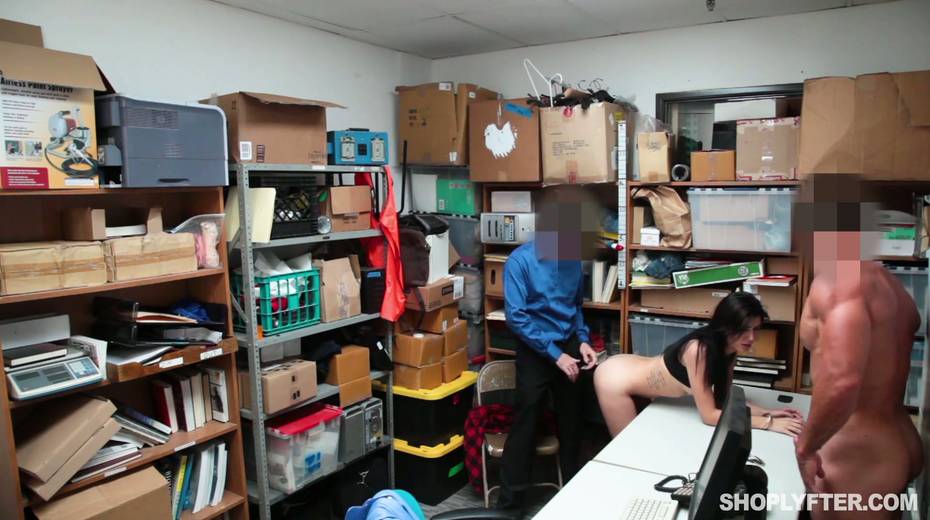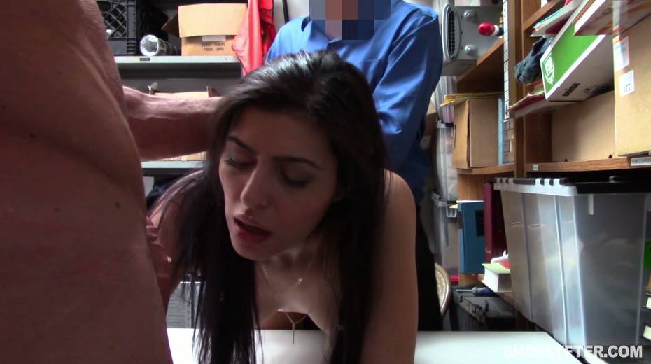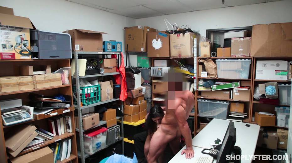 Young shoplifting chick is punished by one kinky policeman in the back room