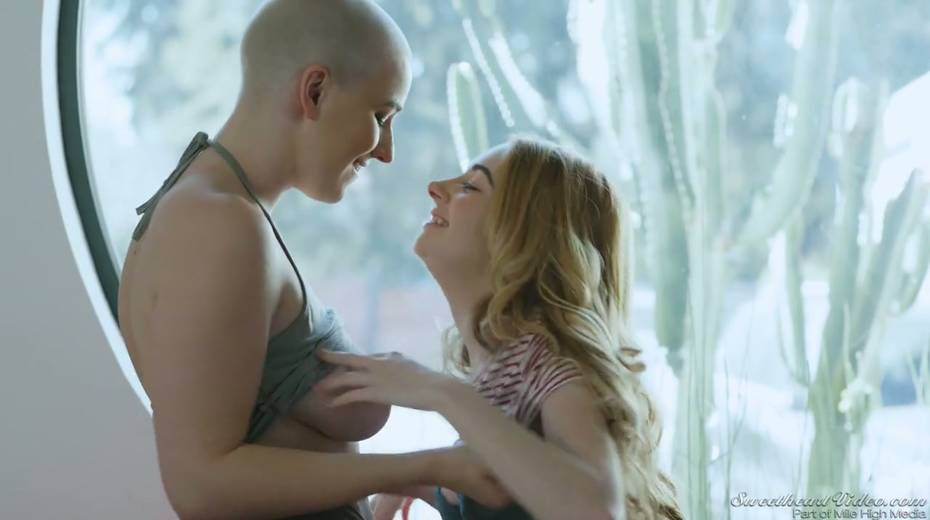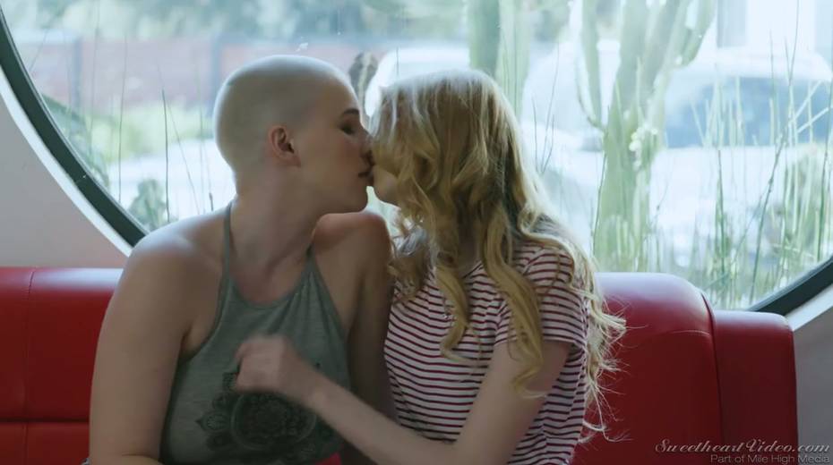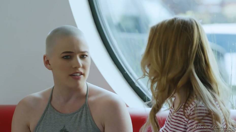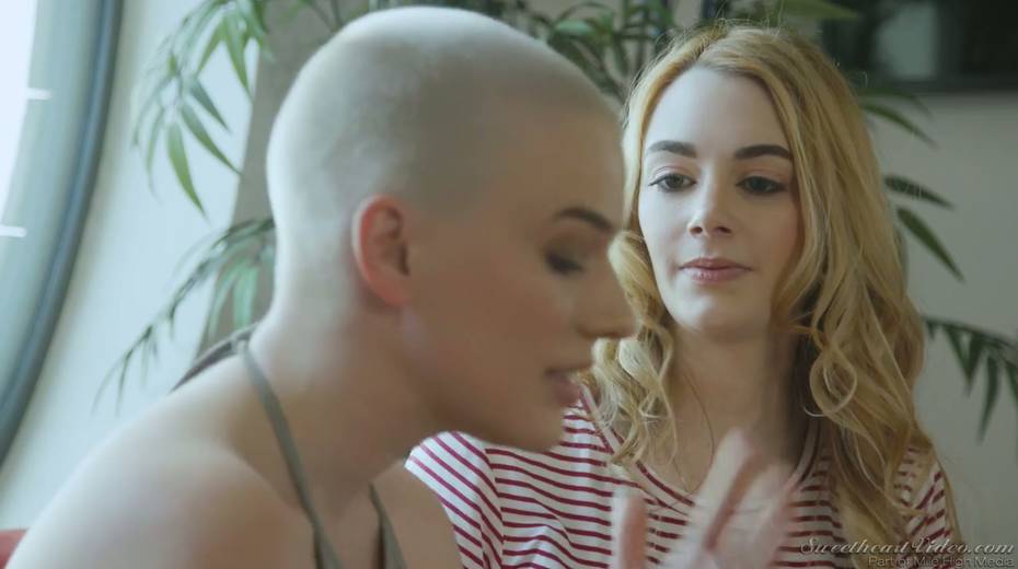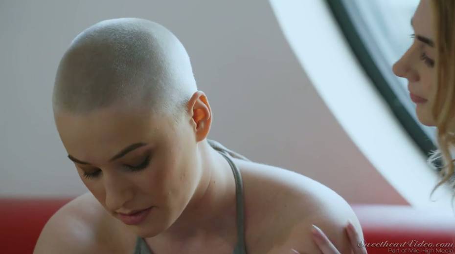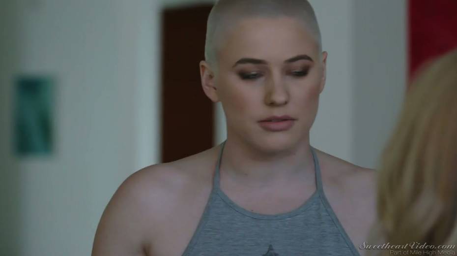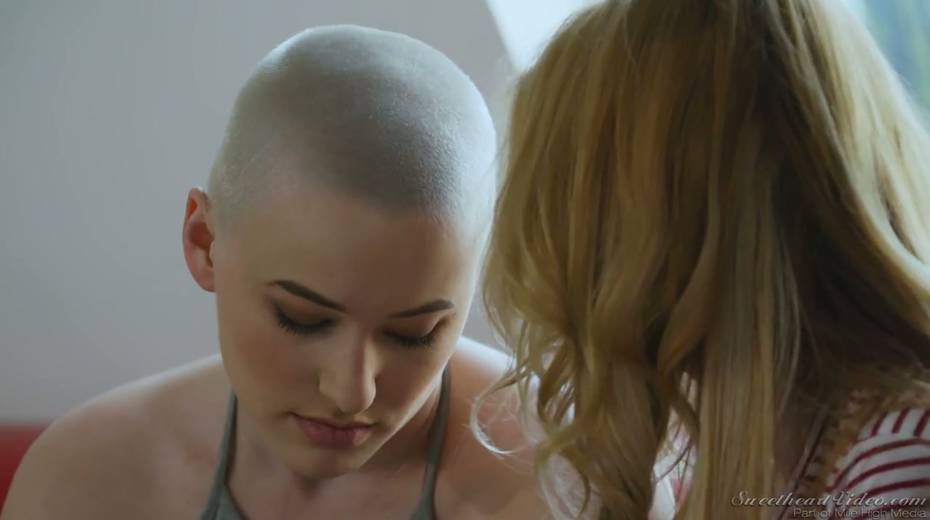 Bald headed dyke Riley Nixon finger fucking and licking tasty GF's pussy