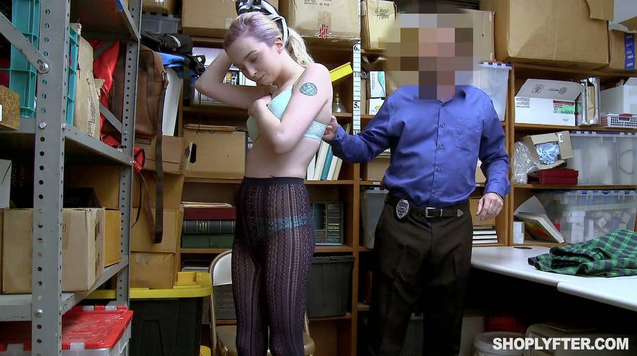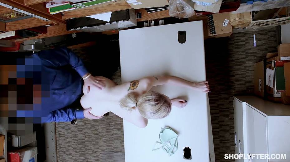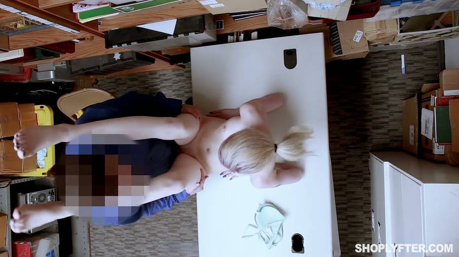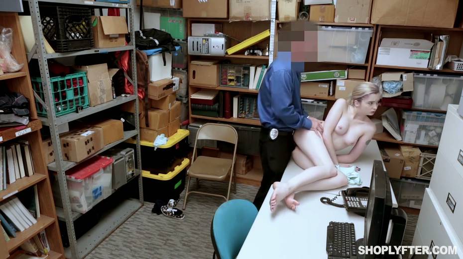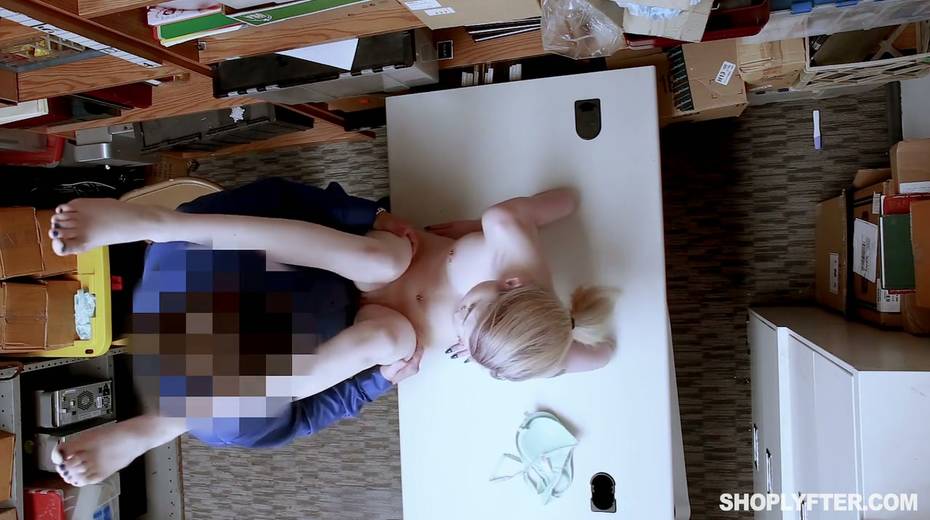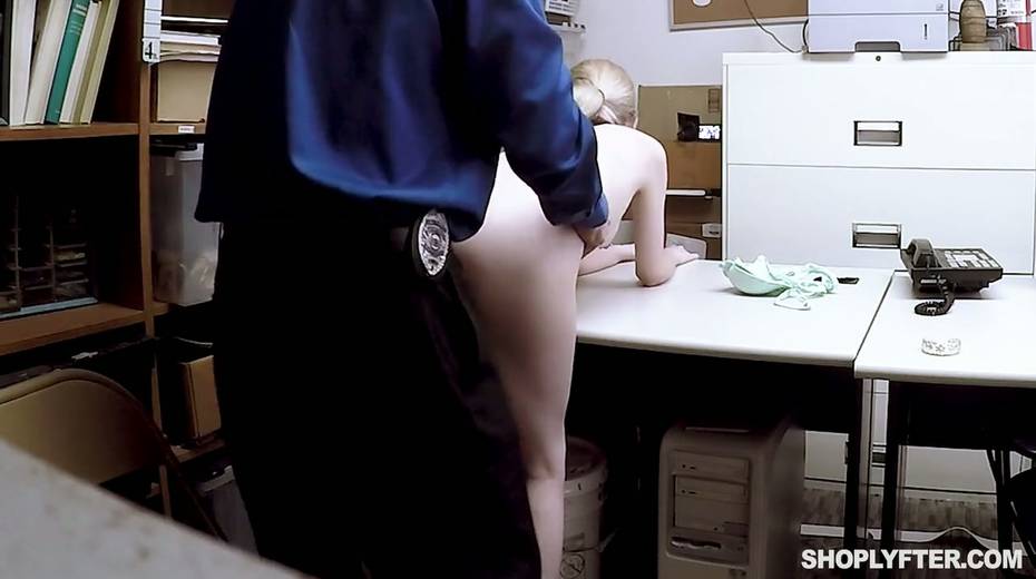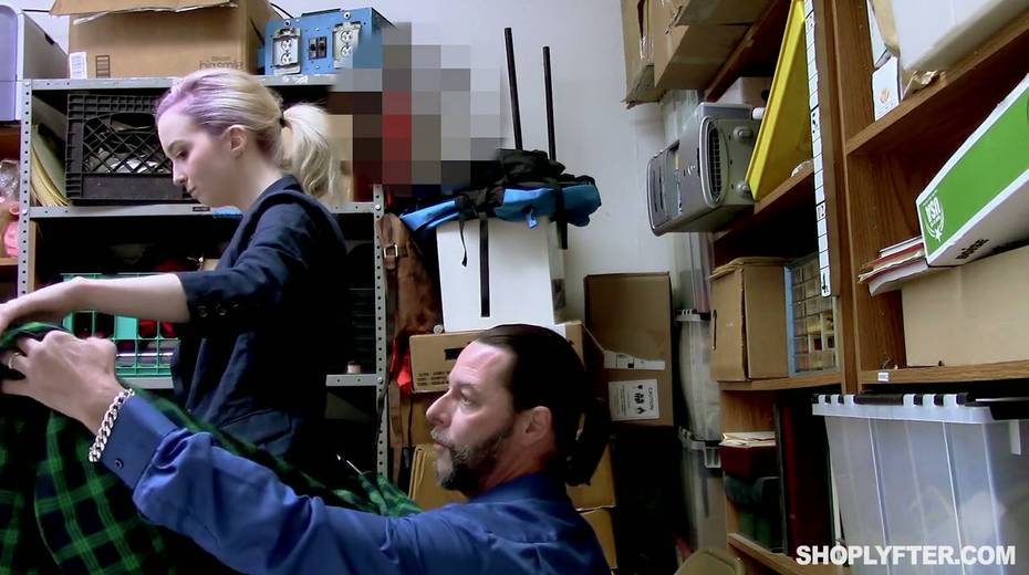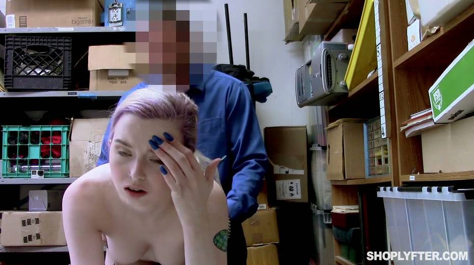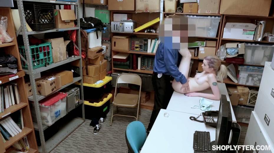 Shoplifting chick Lexi Lore gets her muff and throat punished in the back room