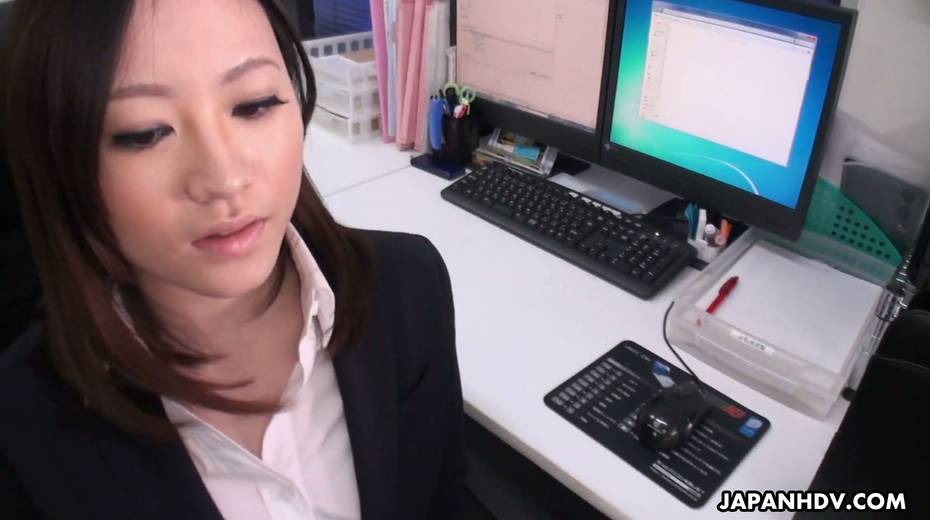 Sex-starved Asian secretary Ritsuko Tachibana is masturbating her pussy in the office