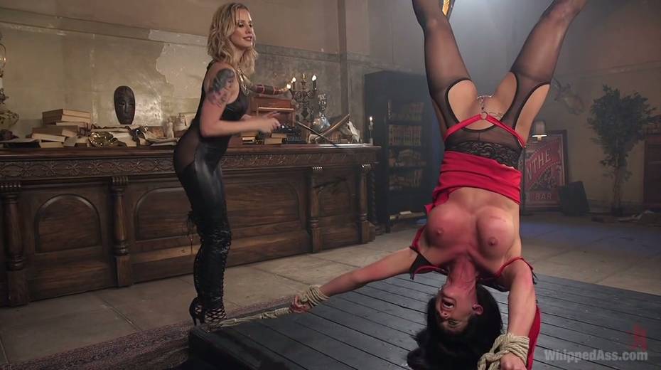 Cruel mistress punishes pussy of tied up and suspended hooker Virginia Tunnels