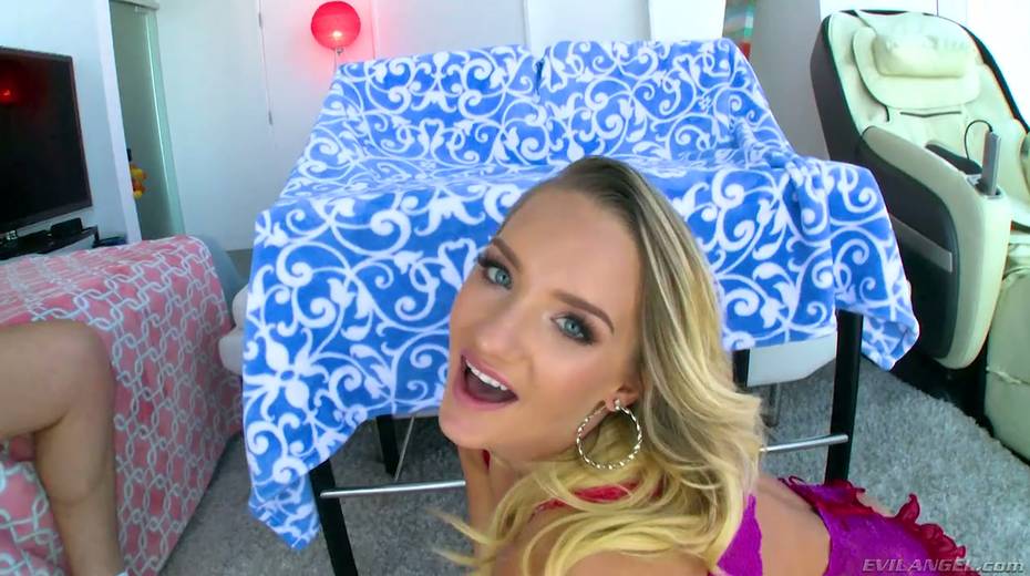 Juggy blond bitch in red stockings and high heels Cali Carter gets her pussy fucked and licked