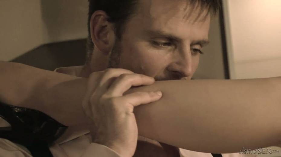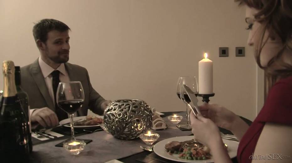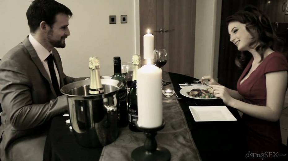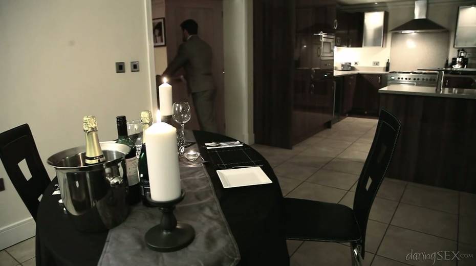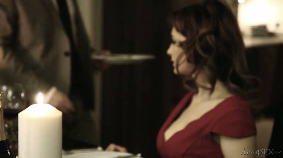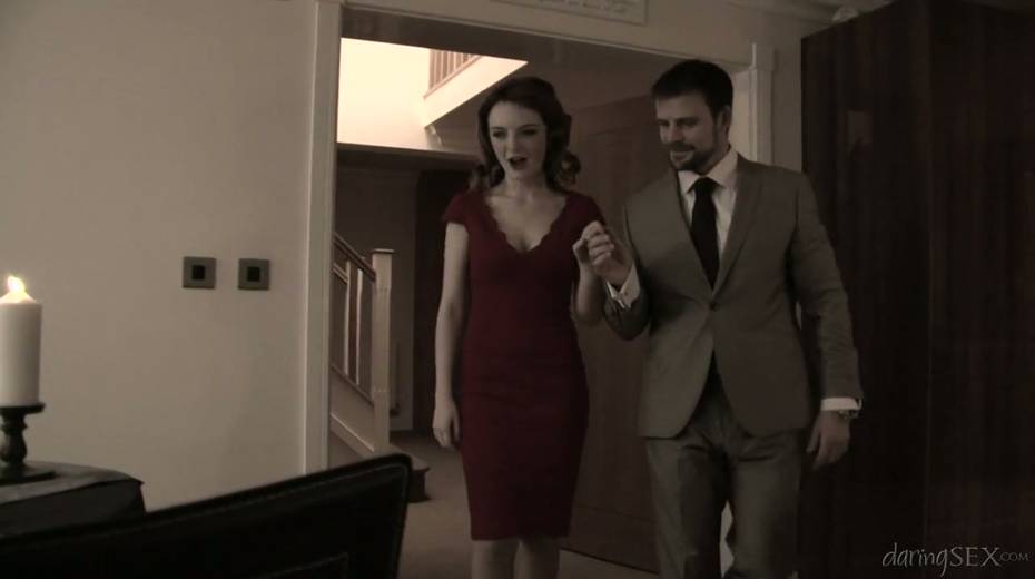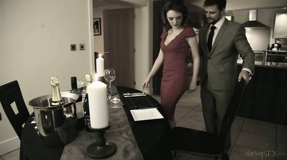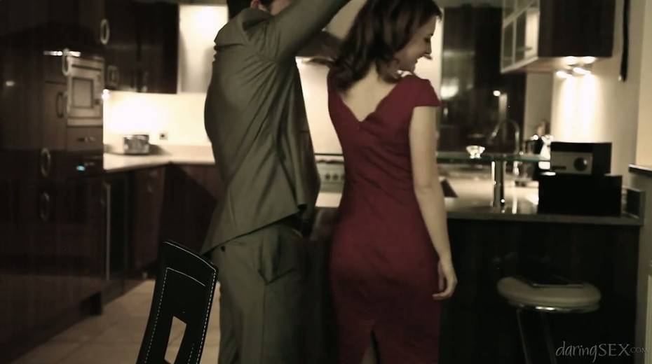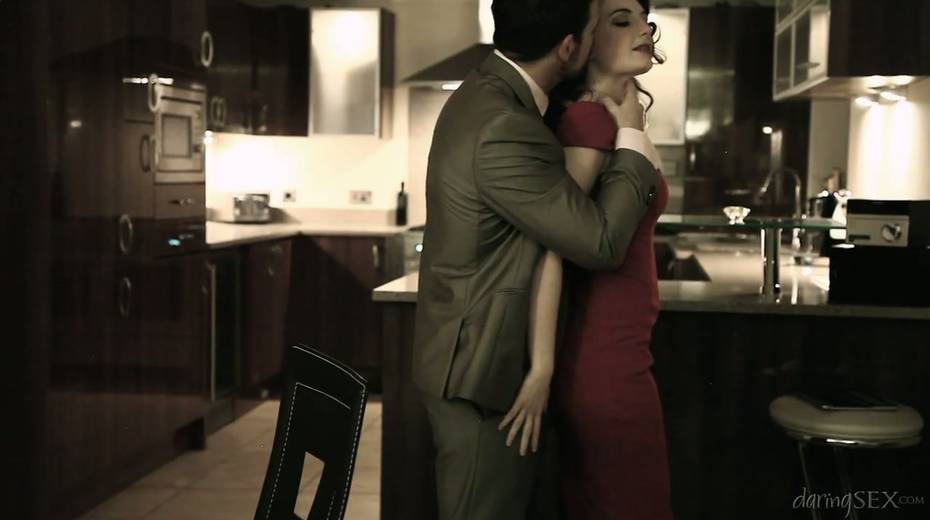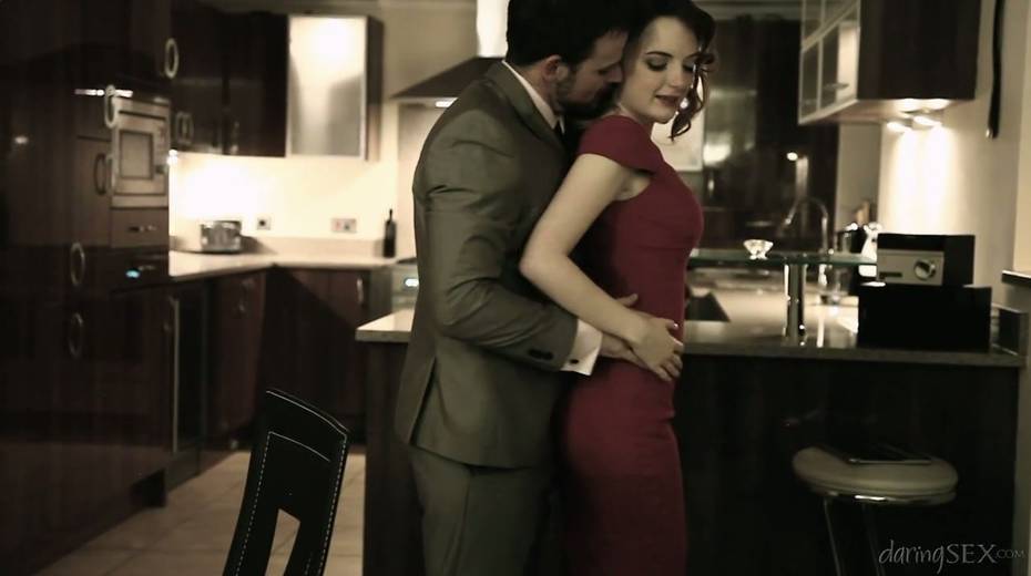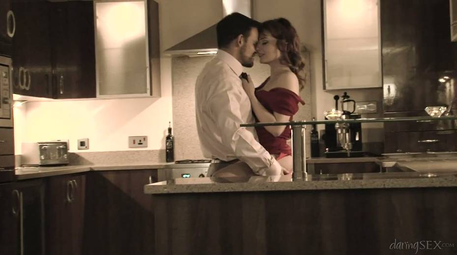 Sensual babe in red dress Lola Gatsby is fucked right in the kitchen
