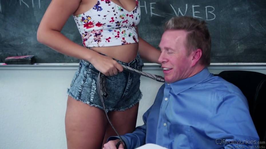Slutty college chick Karter Foxx is flirting with her teacher before a steamy sex