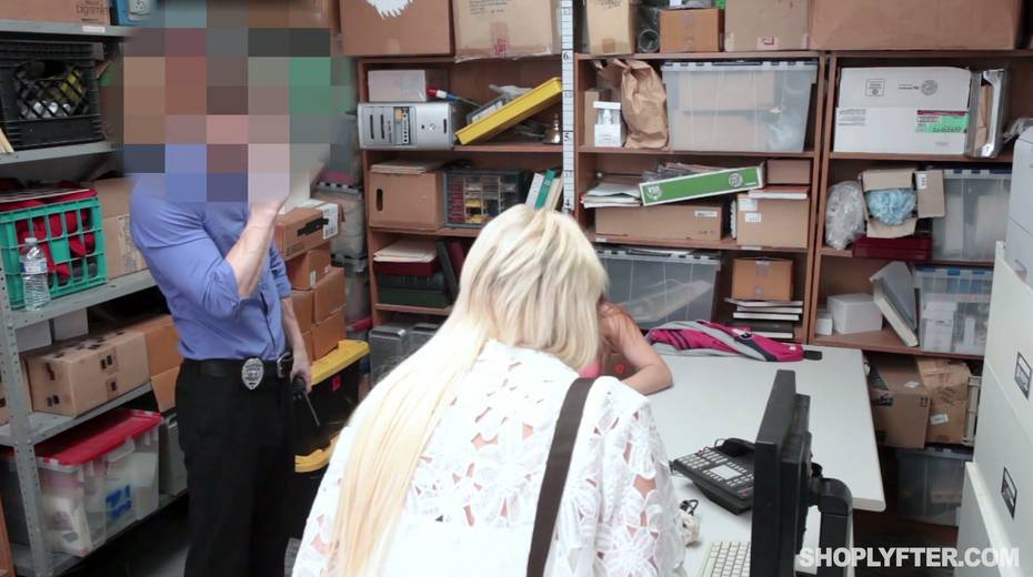 Big tittied shoplifting chick Skylar Snow is fucked and punished in the back room