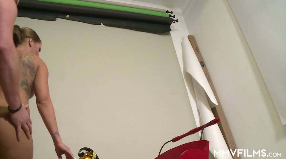 Appetizing tattooed chick Samy Fox is fucked by one kinky bald headed dude