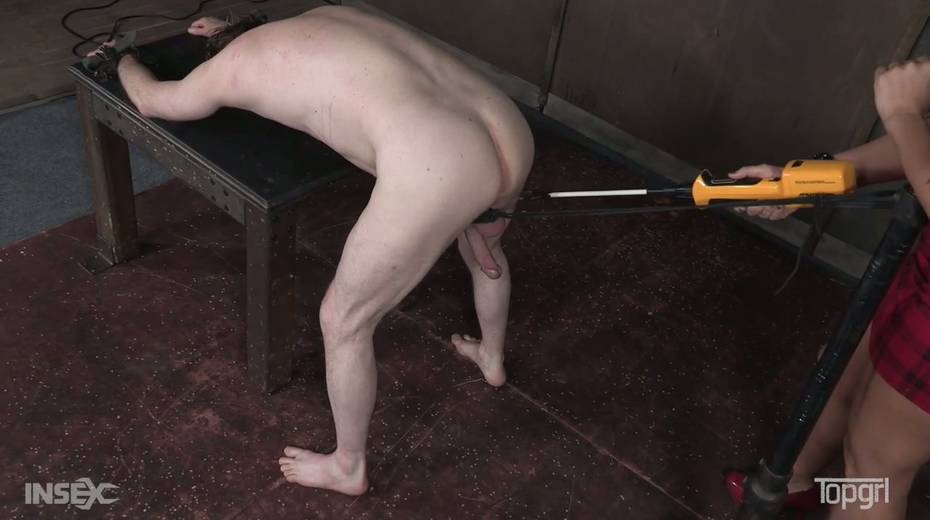 Dude with ball gag in his mouth is punished by cruel mistress London River