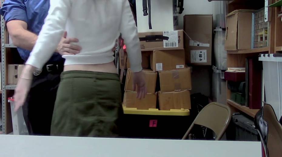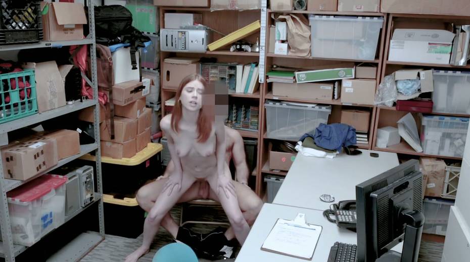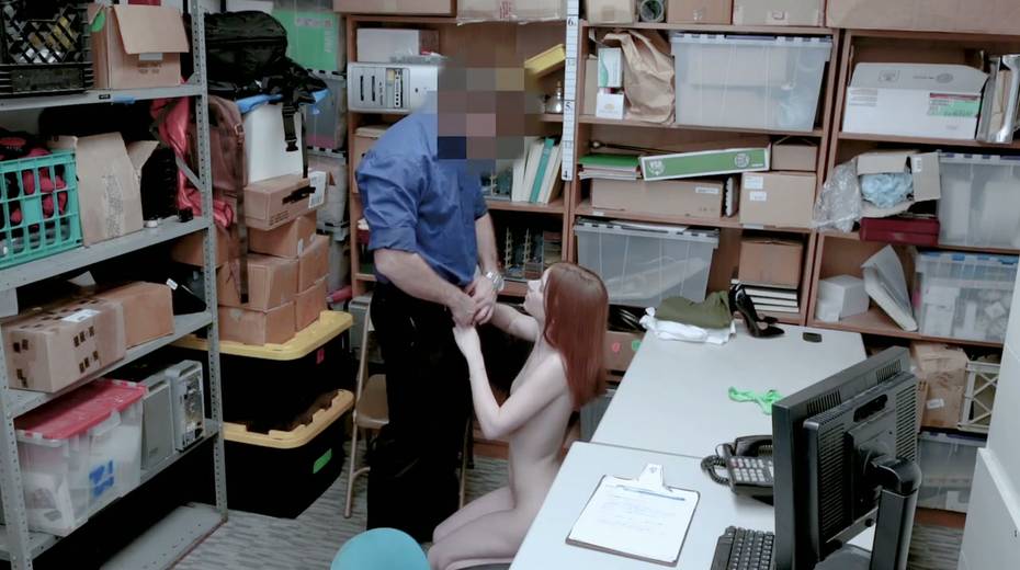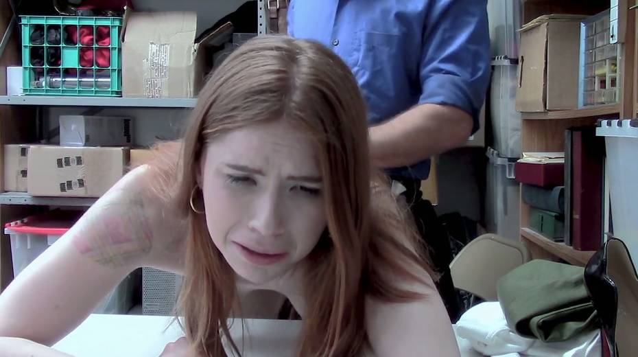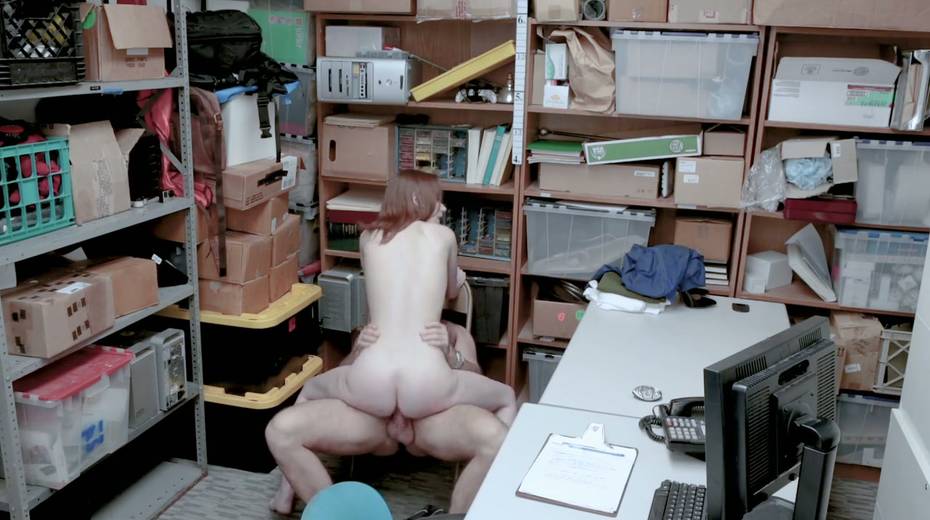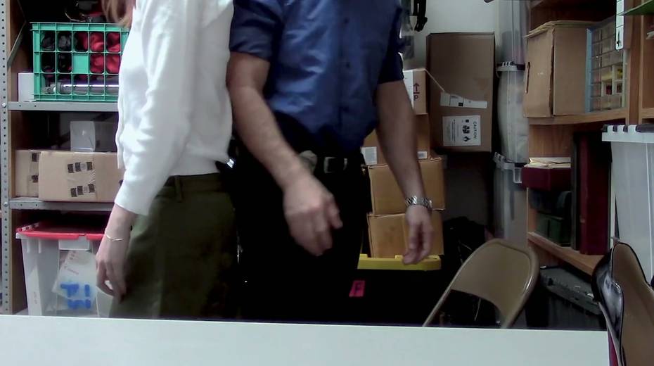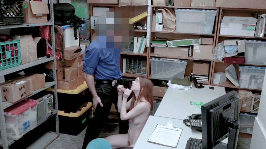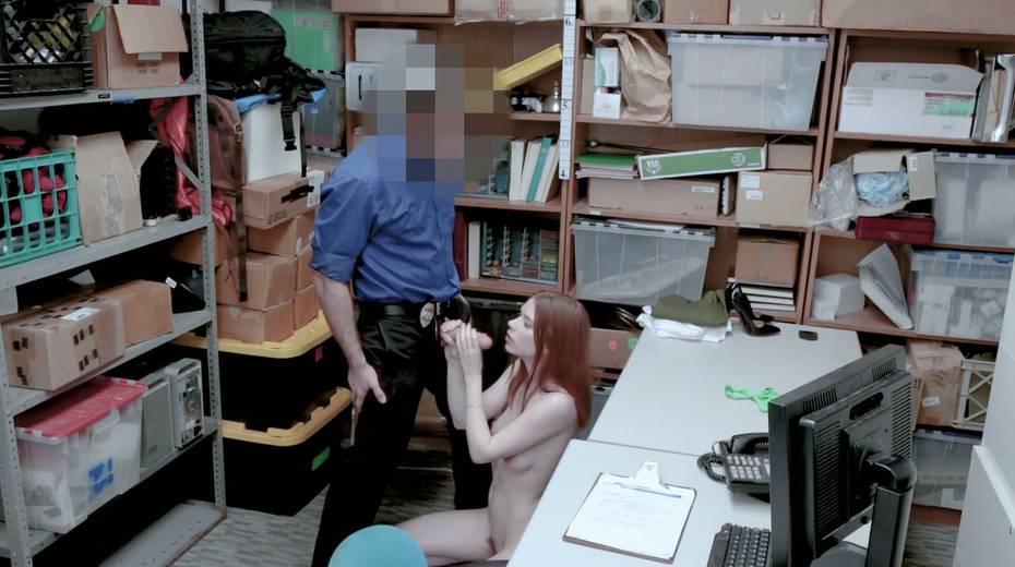 Shoplifting gal Pepper Hart gets her wet pussy and deep throat banged in the back room