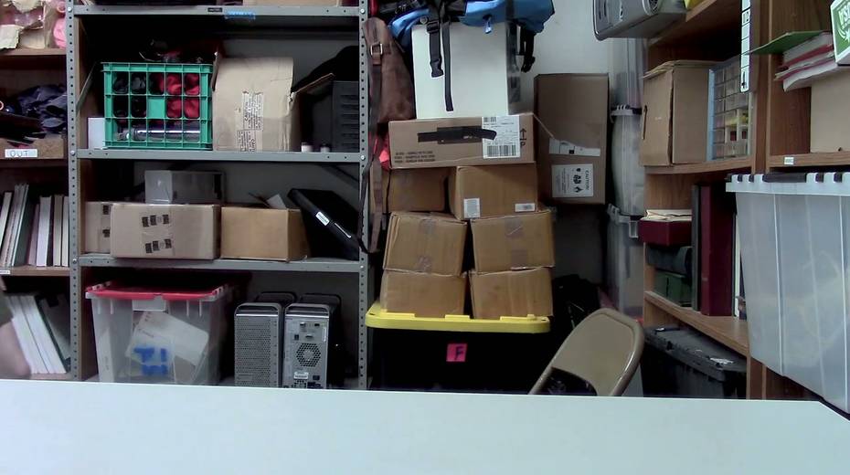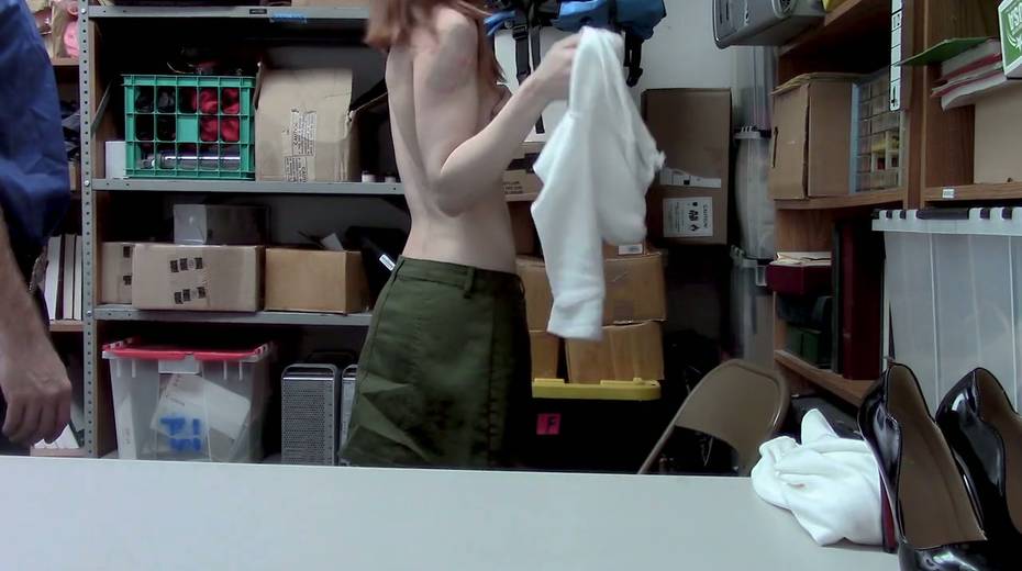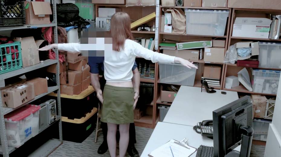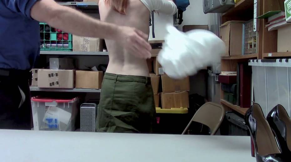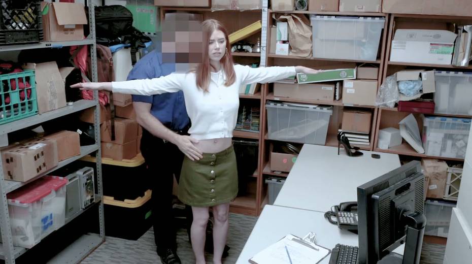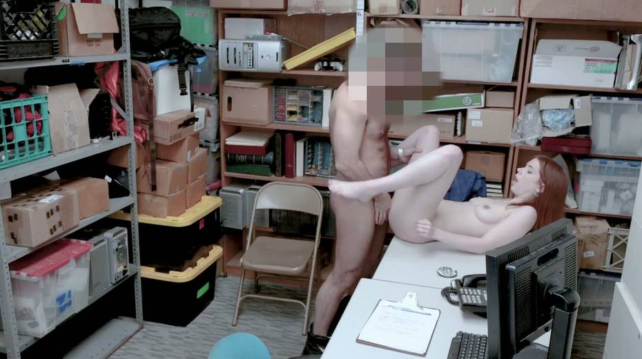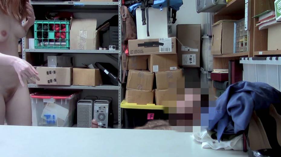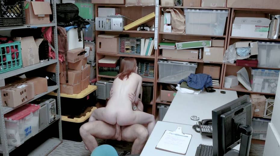 Shoplifting gal Pepper Hart gets her wet pussy and deep throat banged in the back room