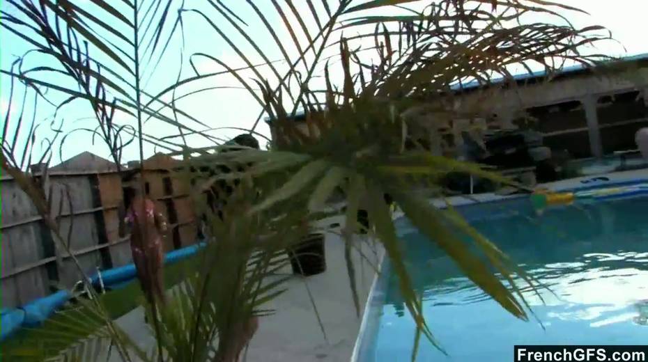 Two sex-starved hookers serve one kinky jerk by the poolside