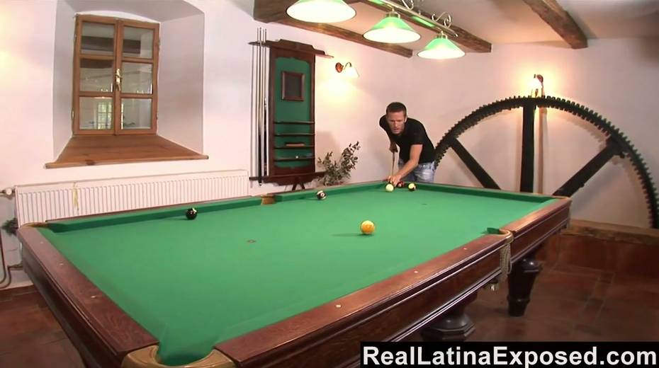 Blond whore Sabrina Blond serves one kinky dude right on the billiard table