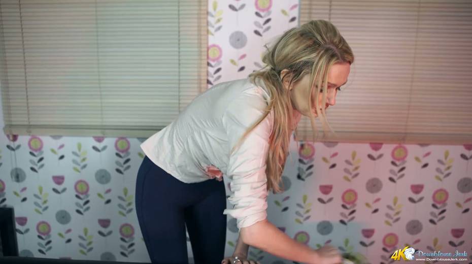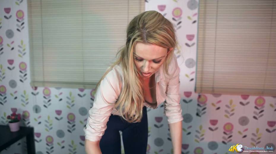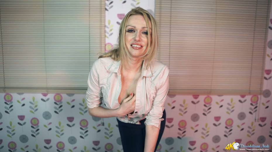 Super slutty housewife Amber Jayne can't cope with her super big boobs popping out of her bra