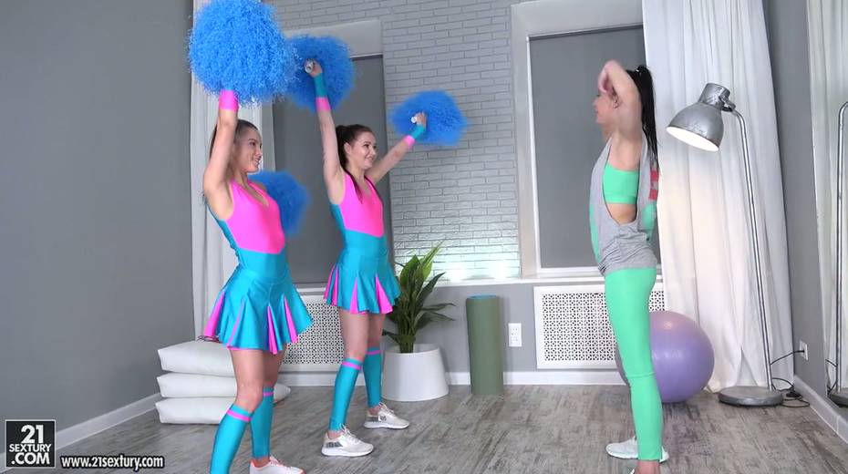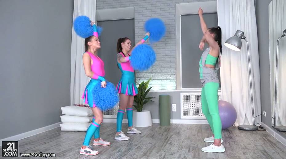 Three pretty cheerleaders undress and fuck each others yummy pussies