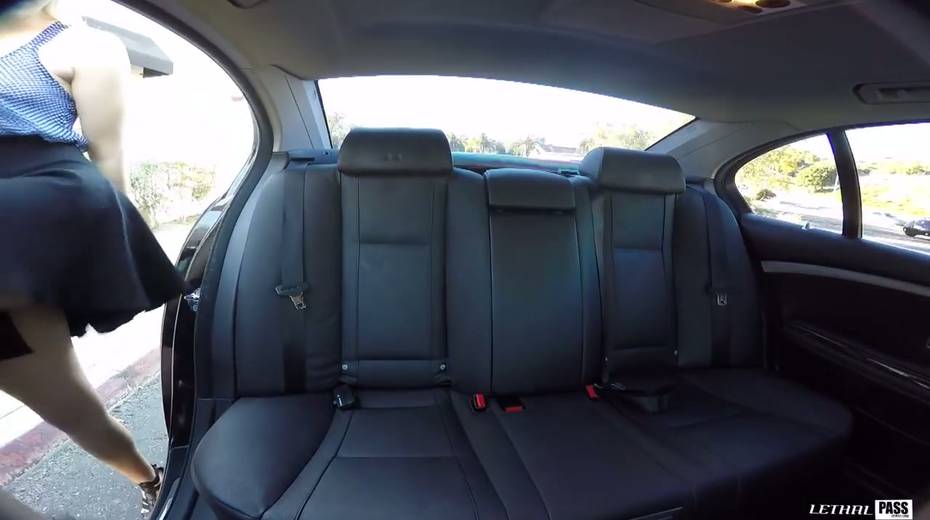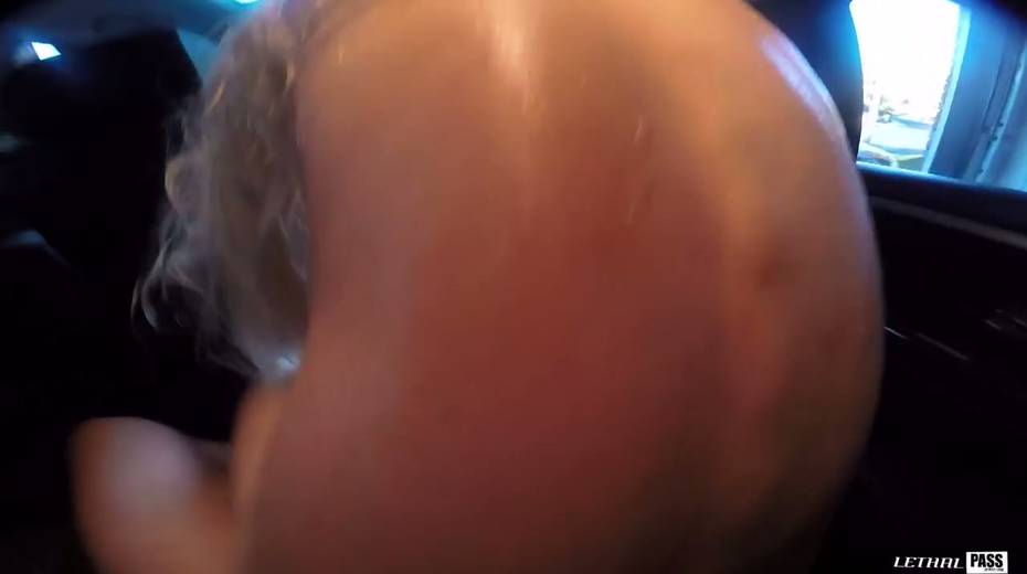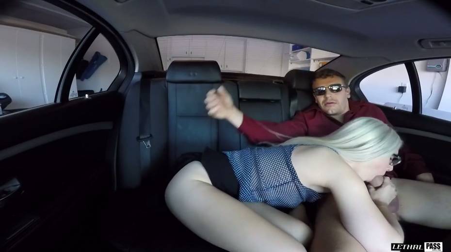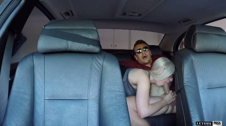 Blonde in glasses Nikki Snow gives her head in the car and enjoys riding a dick