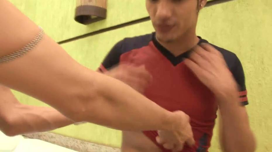 Leggy shemale Bia Bastos fucks anal hole of one bisexual dude