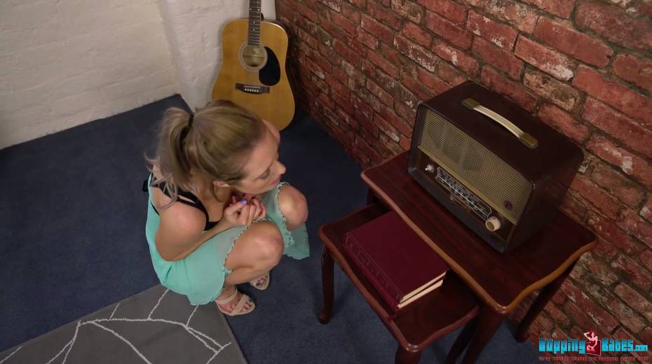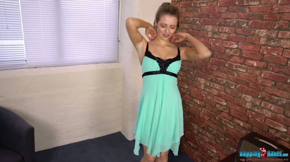 Lewd chick with sexy body Jayne takes off her dress and shows striptease