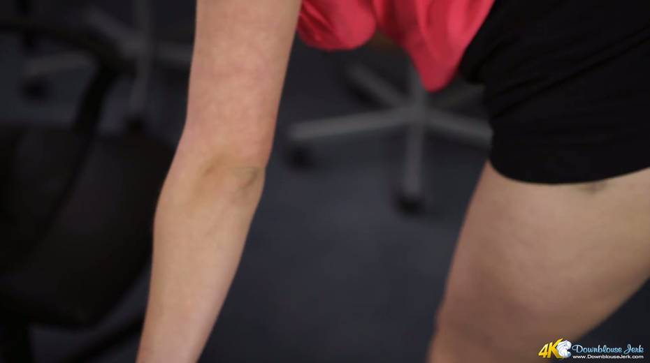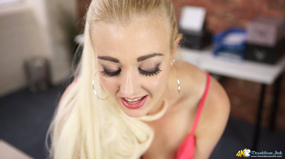 Alluring blond secretary Sapphire Blue shows off her captivating jugs