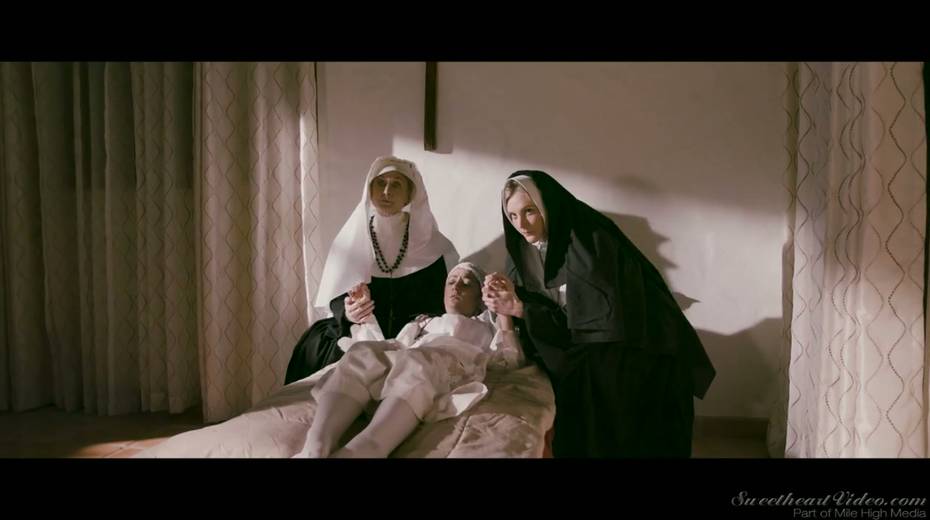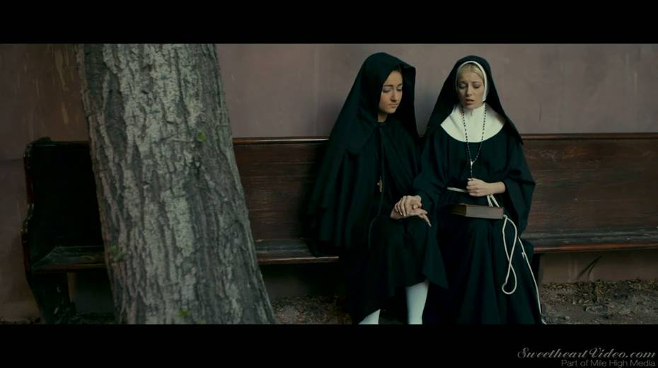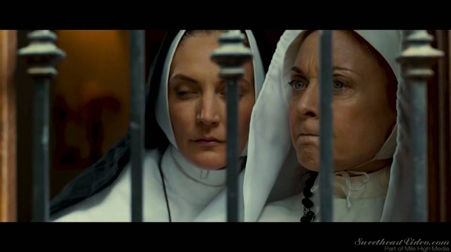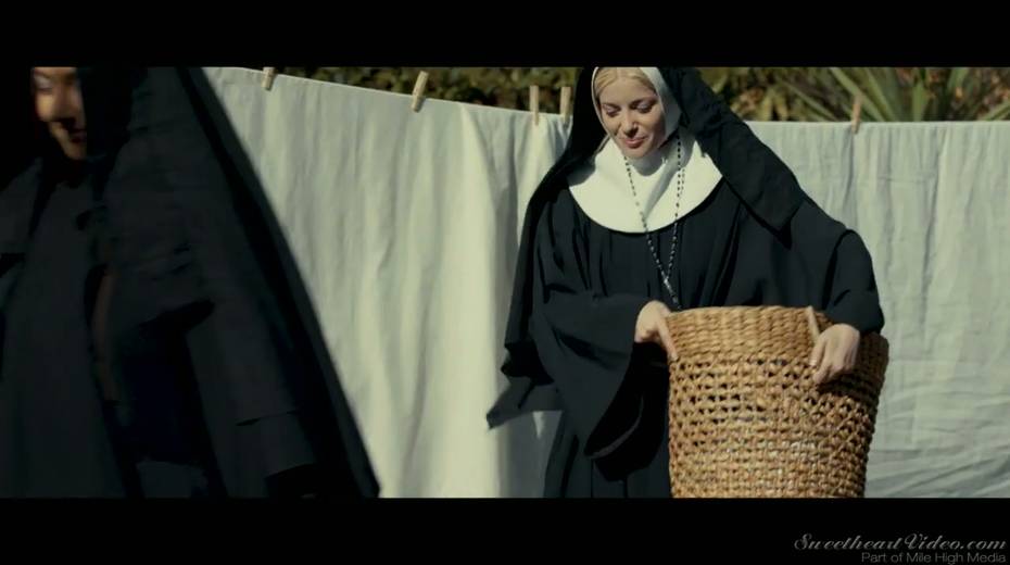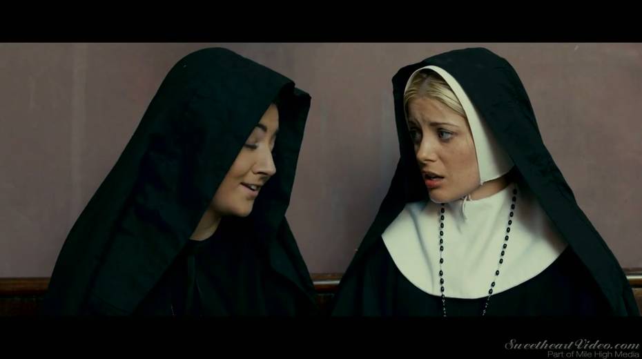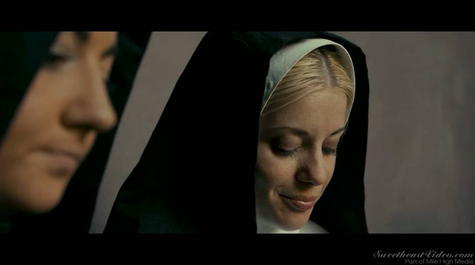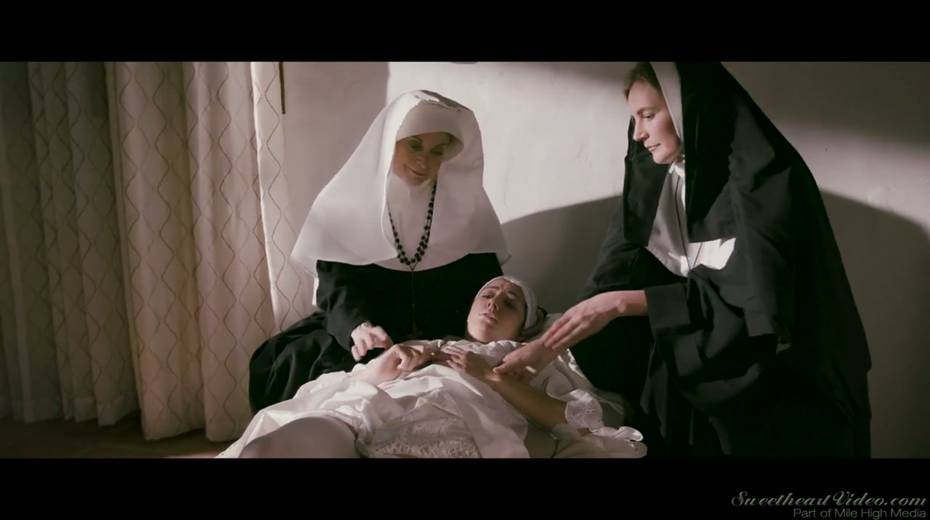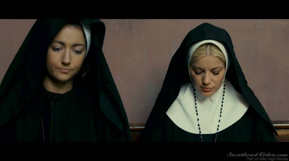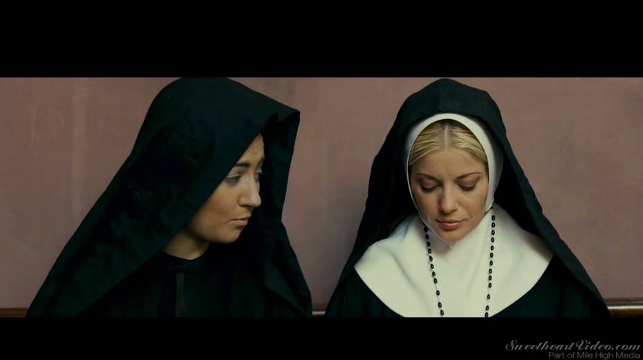 Sinfully beautiful babe Charlotte Stokely gets intimate with two sex-starved nuns