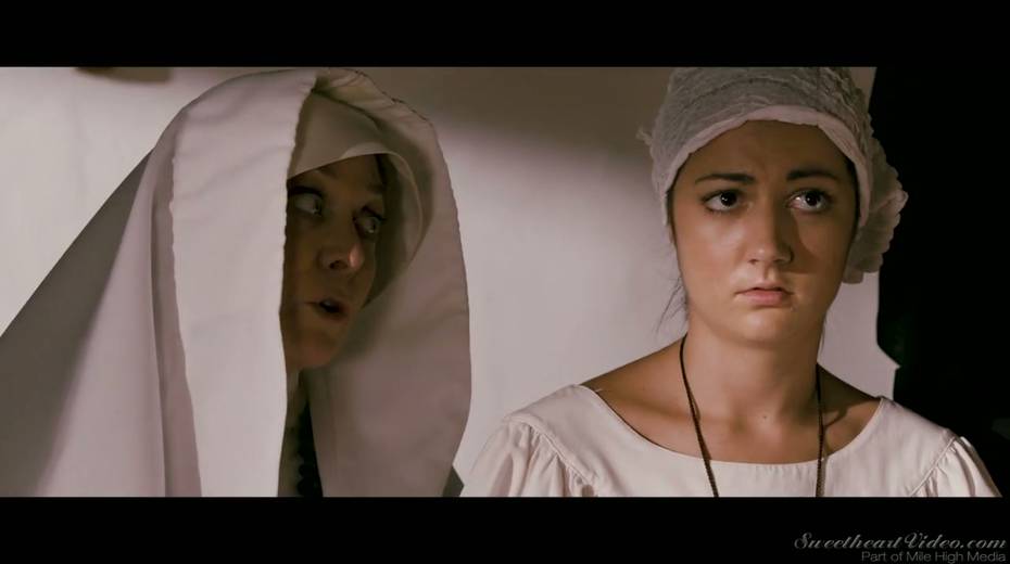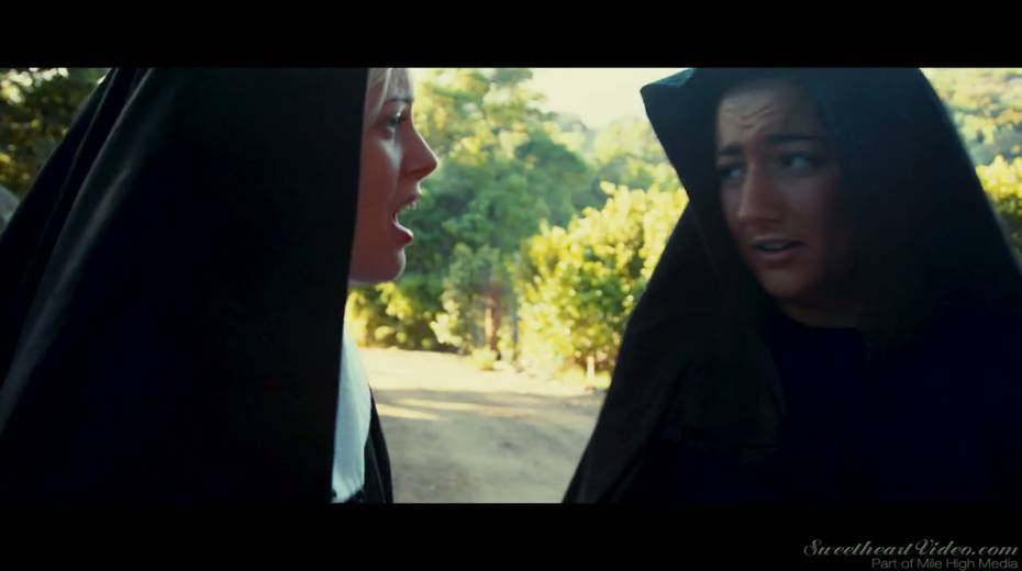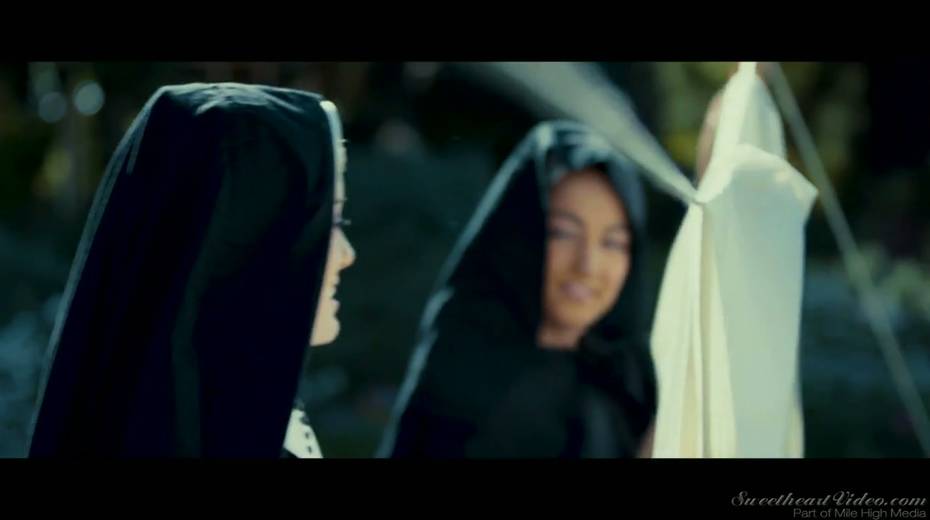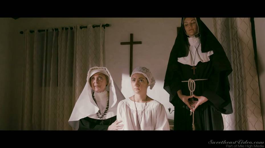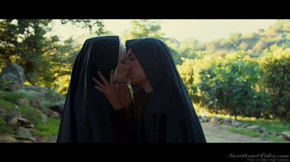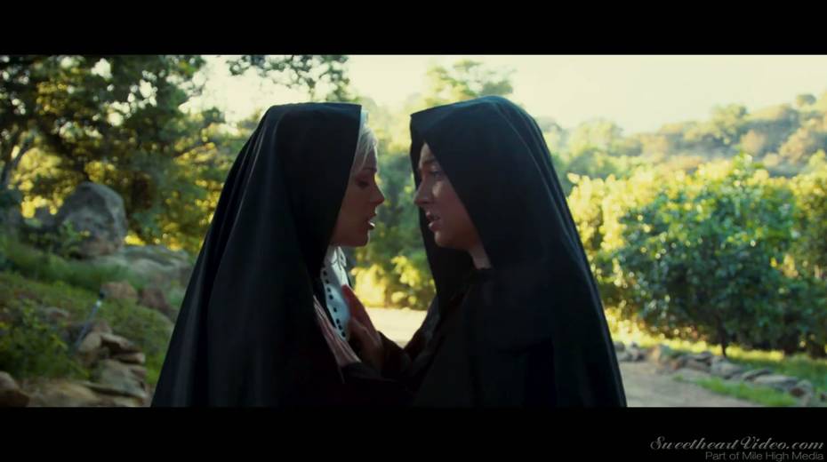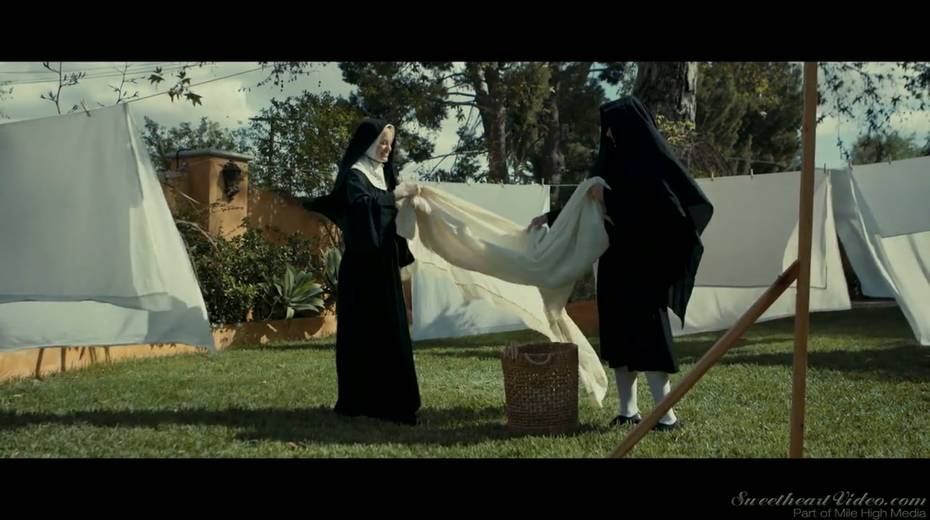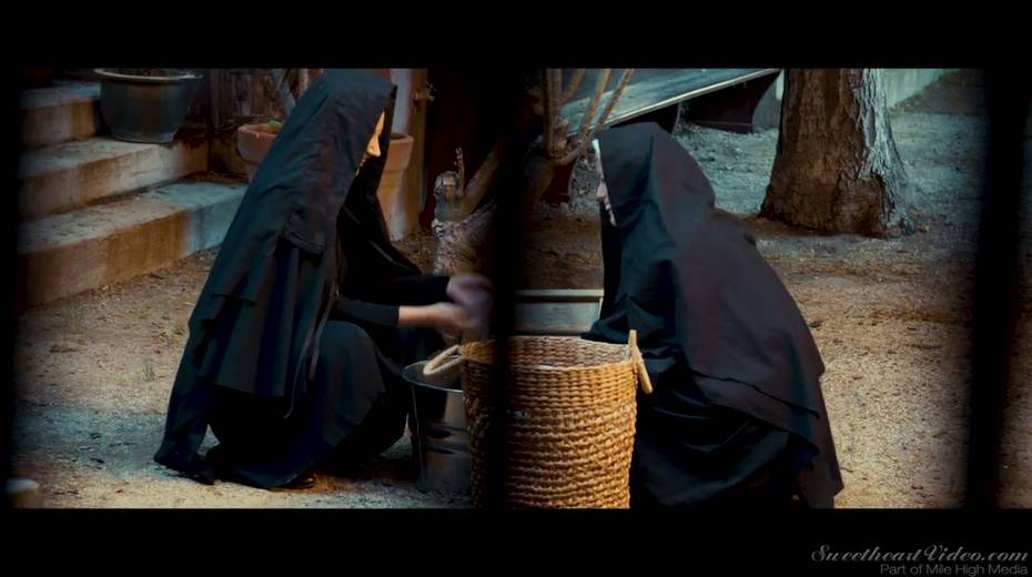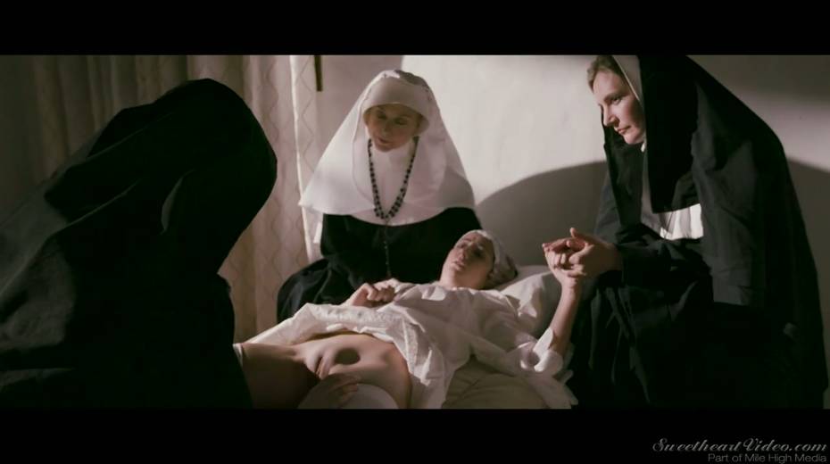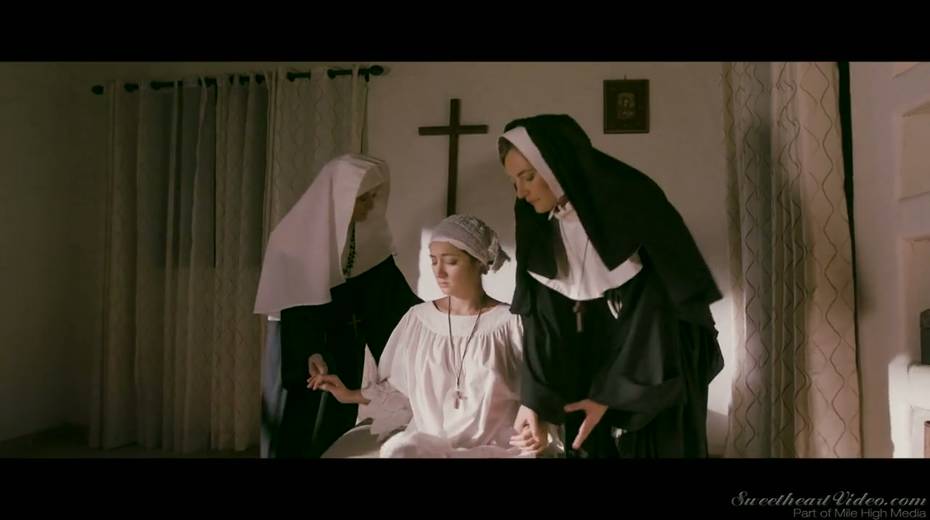 Sinfully beautiful babe Charlotte Stokely gets intimate with two sex-starved nuns