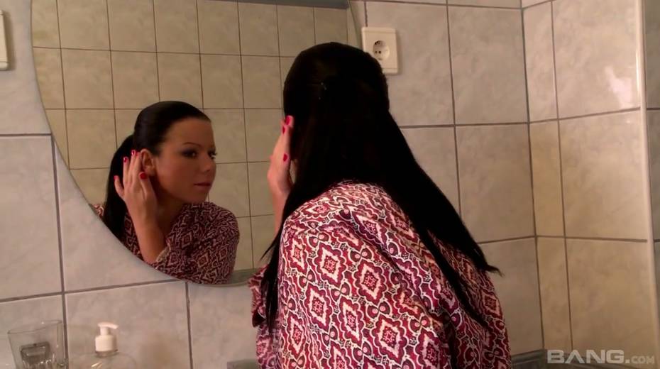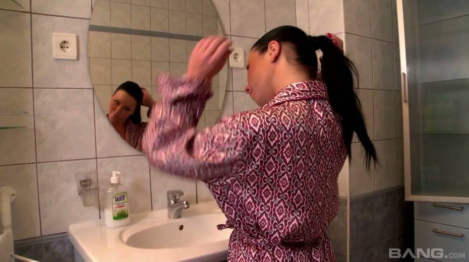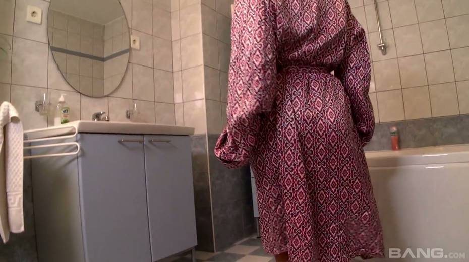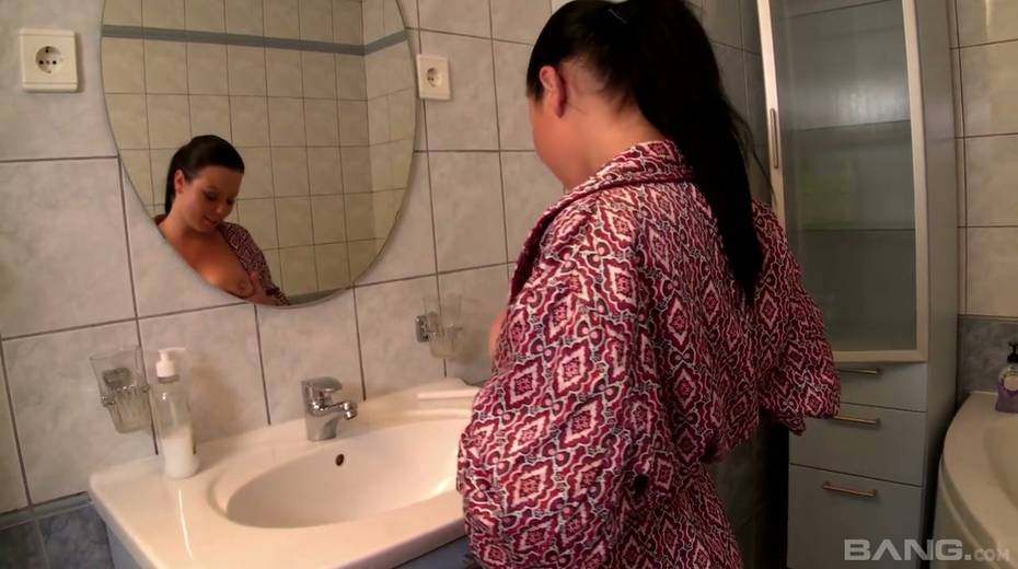 Ample breasted housewife Klaudia Hot is masturbating her pussy in the bathroom