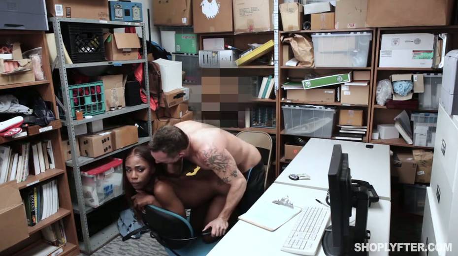 Juggy and bootyful ebone babe Sarah Banks gets her pussy rammed in the back room