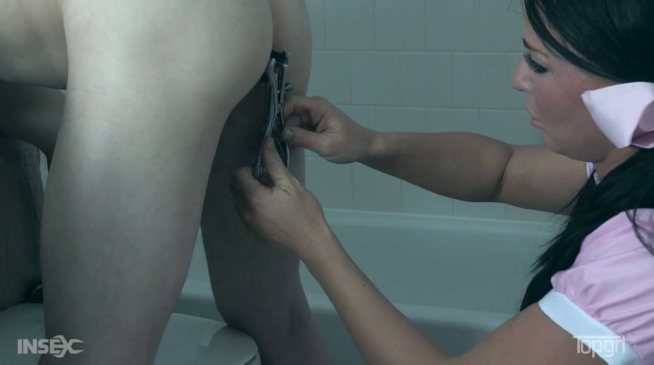 Curious chick London River is checking out dick and ass hole of her submissive