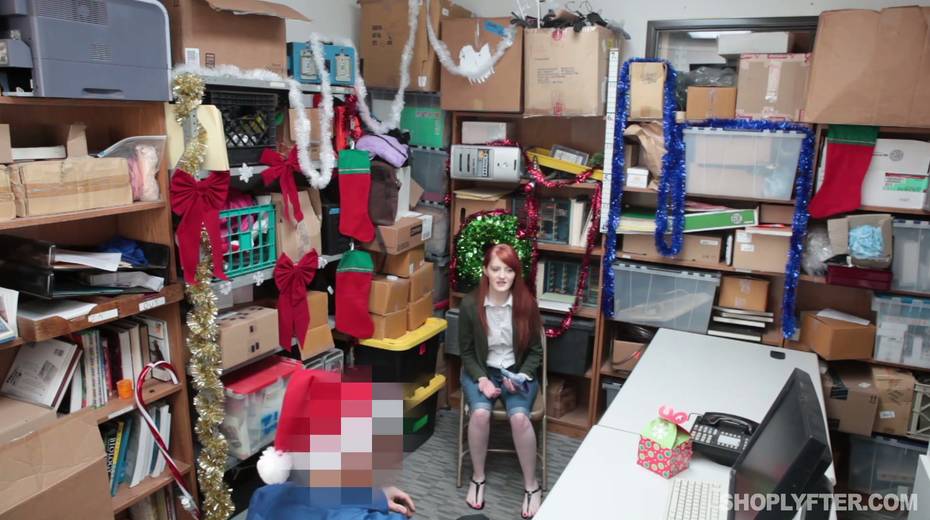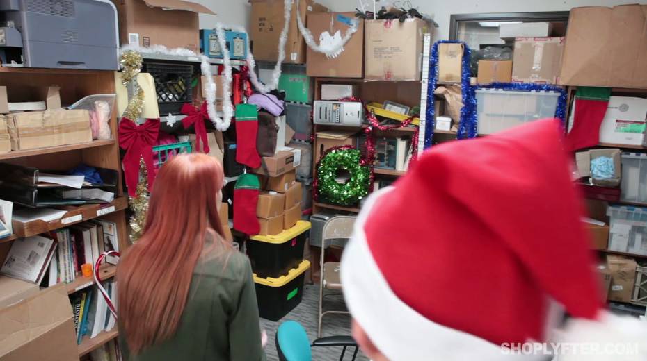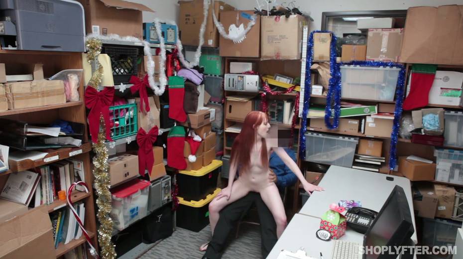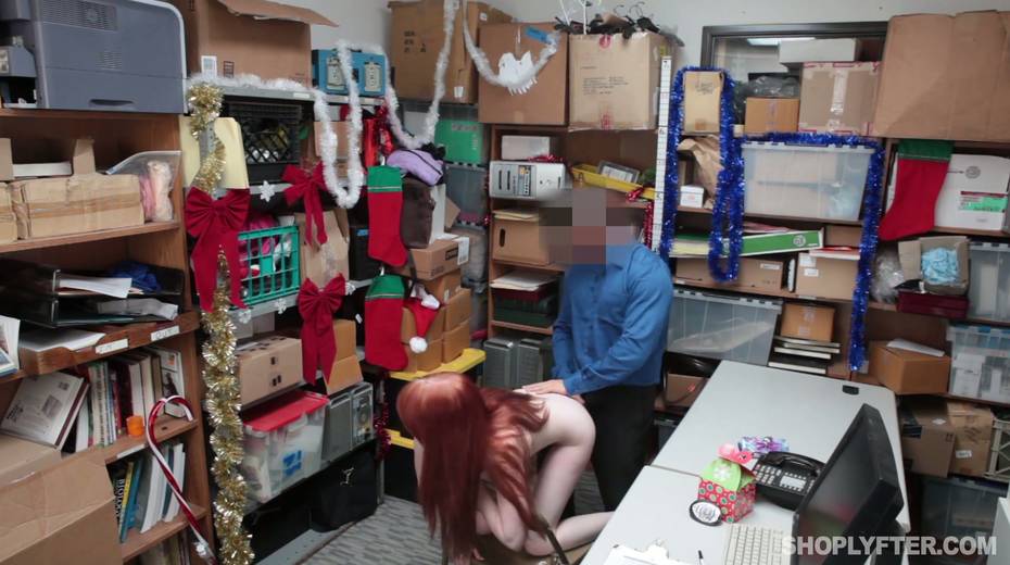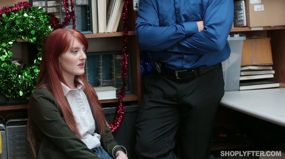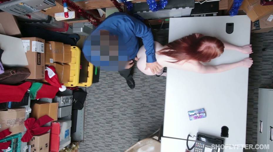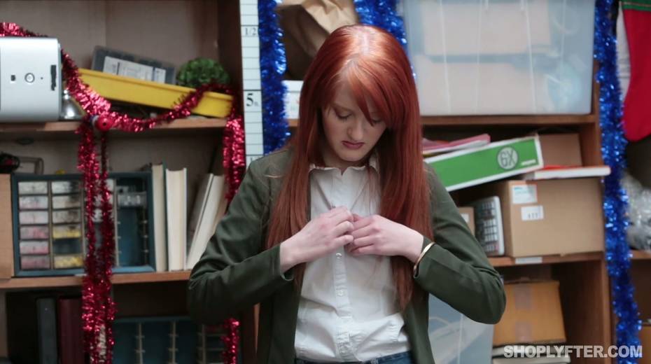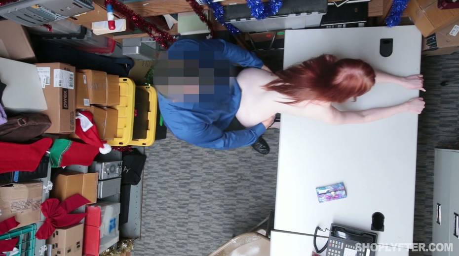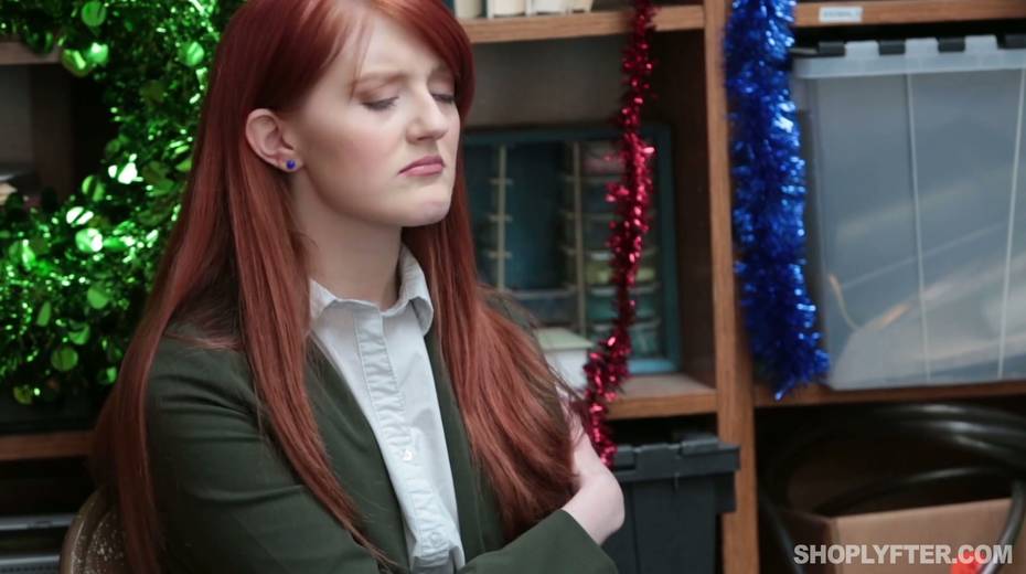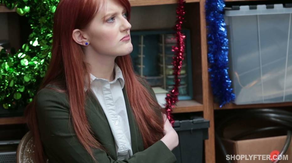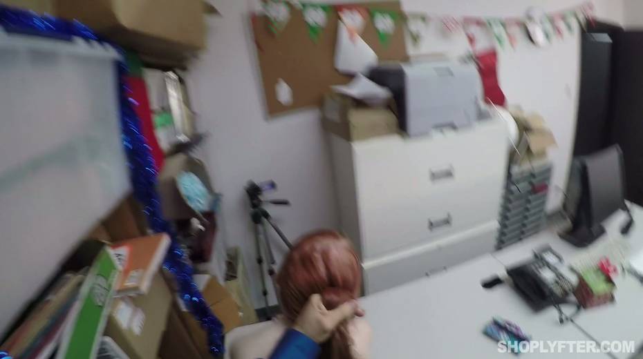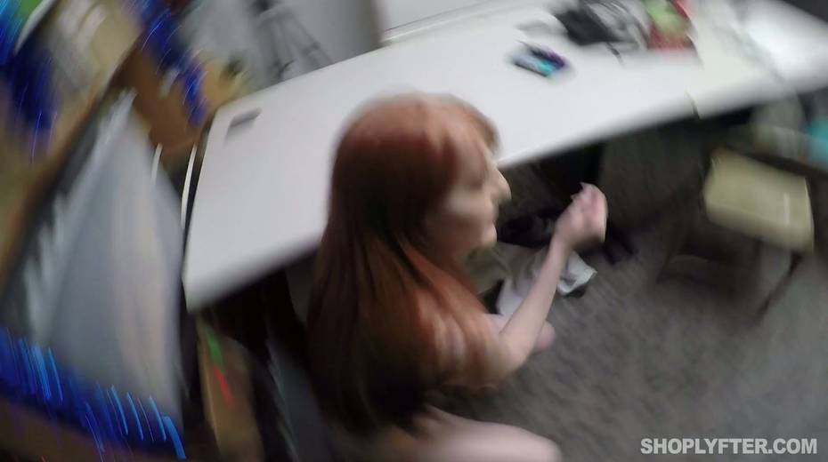 Red shoplifting chick Krystal Orchid gets her pussy punished in the back room