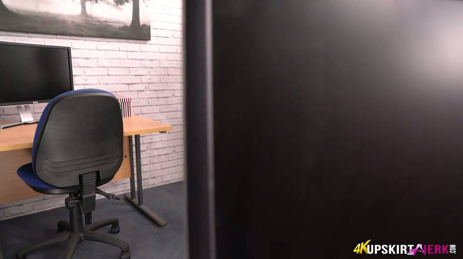 Blonde secretary Lucy Lume bends over and shows panties upskirt