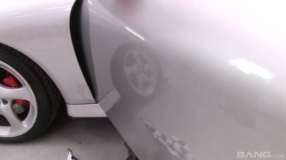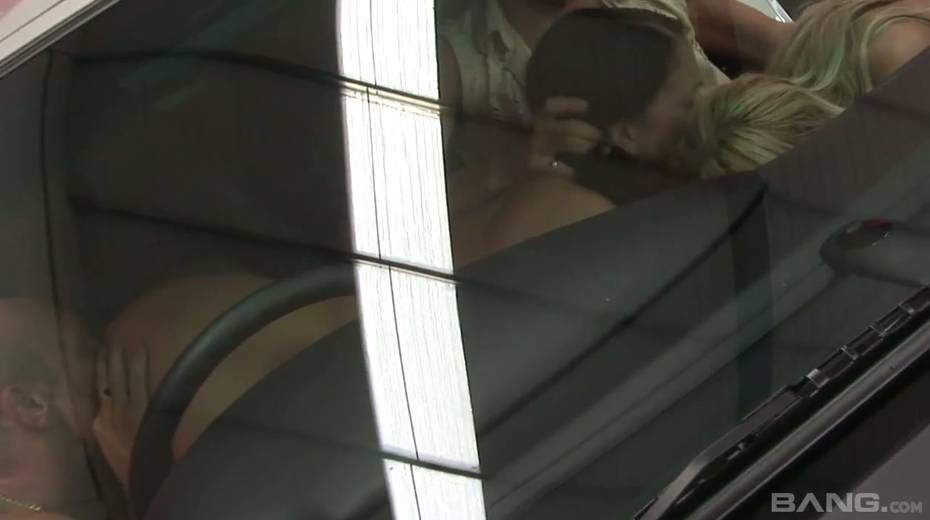 Two sexy promo girls are fucked by two hot blooded clients by the car