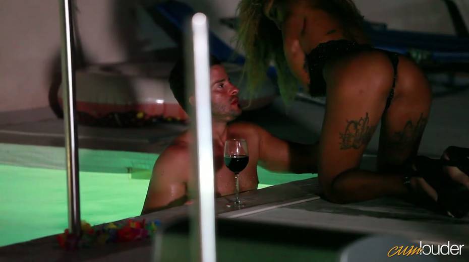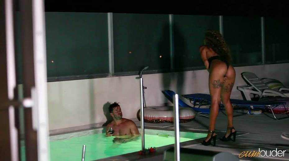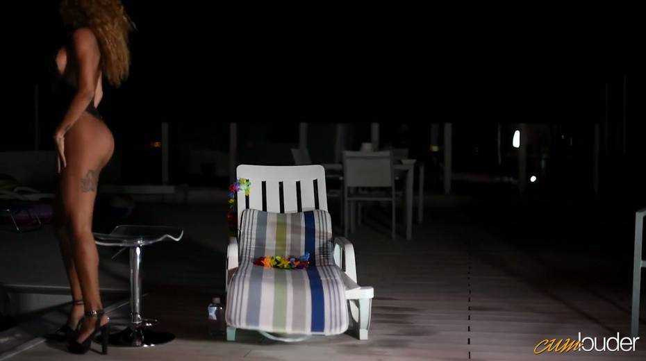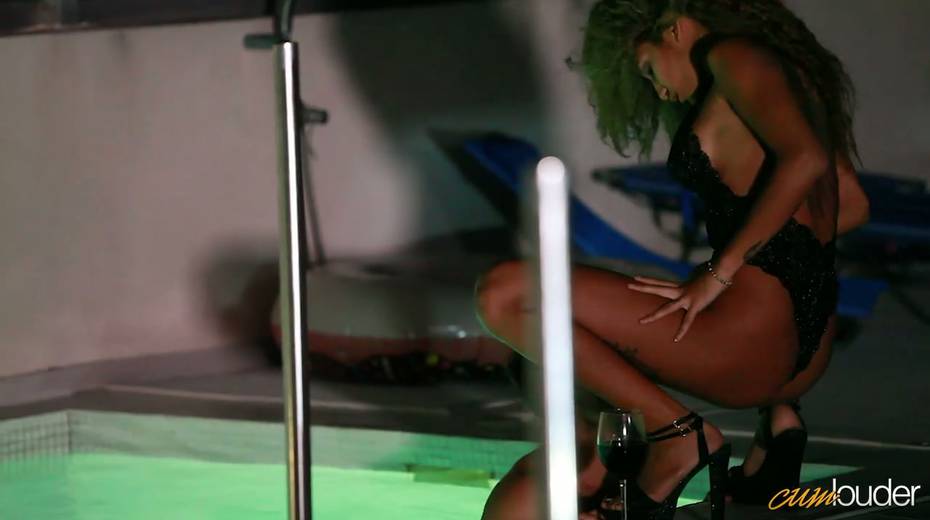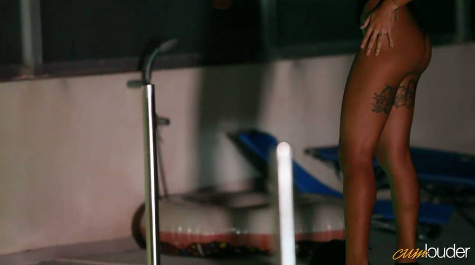 Curly seductress with sexy tanned body Venus Afrodita goes wild on a hard pole