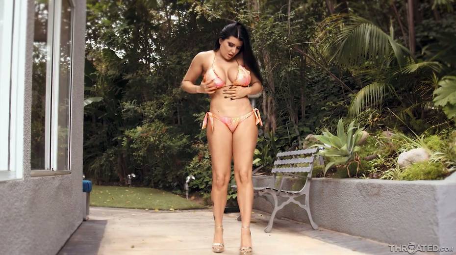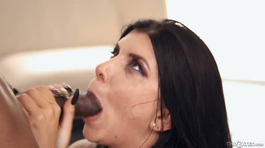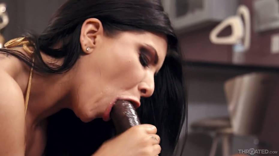 Jaw dropping bombshell Romi Rain gives a blowjob to well endowed mandingo