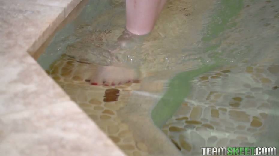 Russian red haired babe Eva Berger gives a blowjob and gets fucked by the poolside