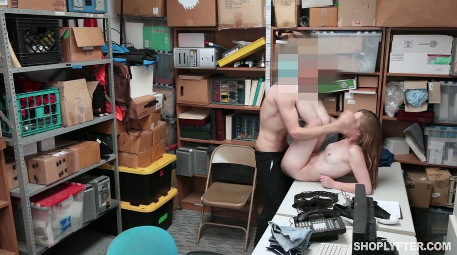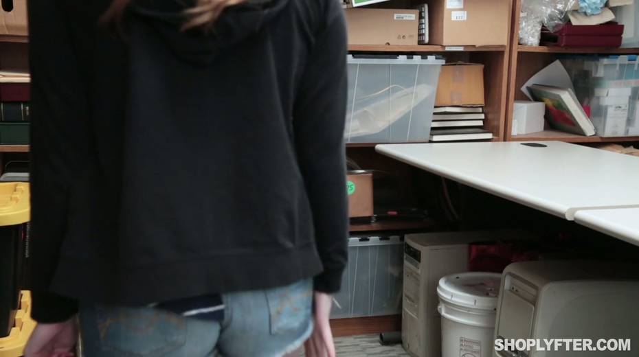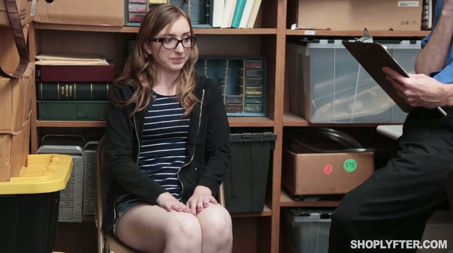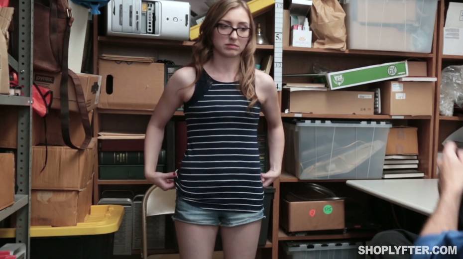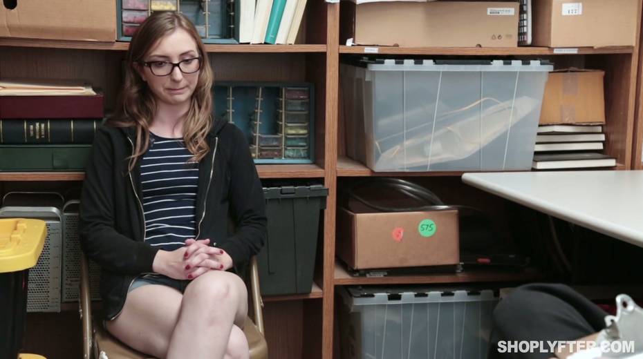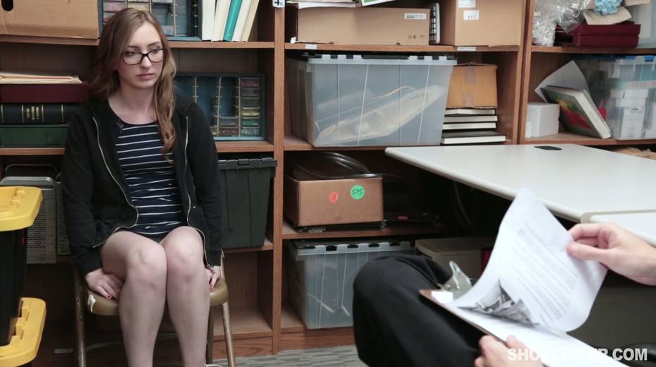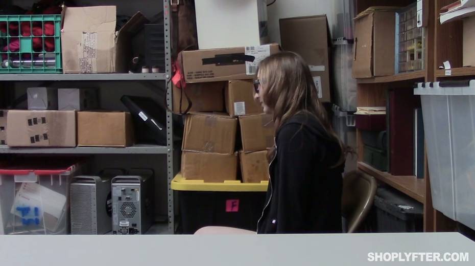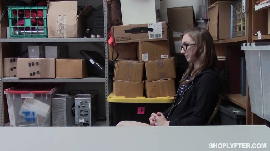 Four eyed chick Gracie May Green is punished for shoplifting in the back room
