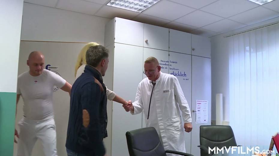 Kinky blonde Gabriella Daniels is fucked by her BF and kinky doctors