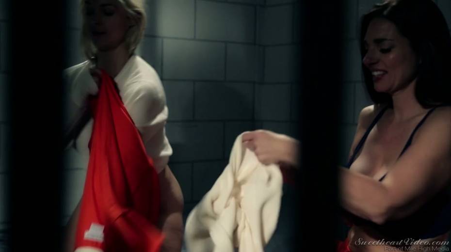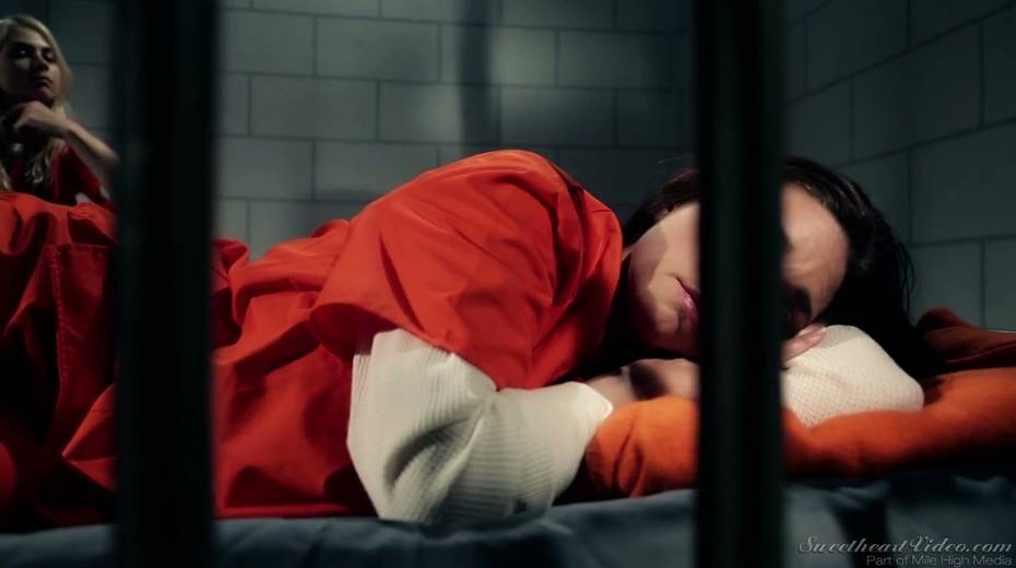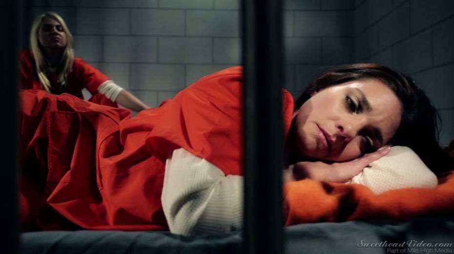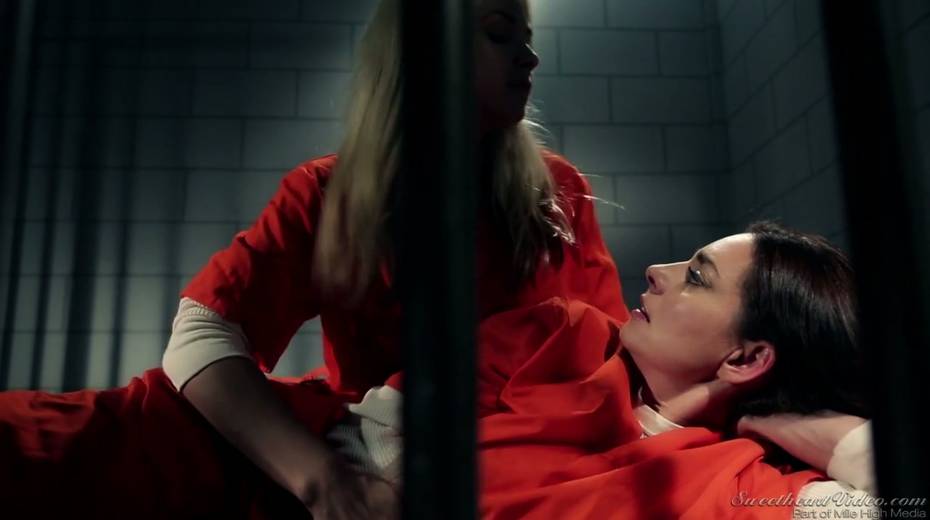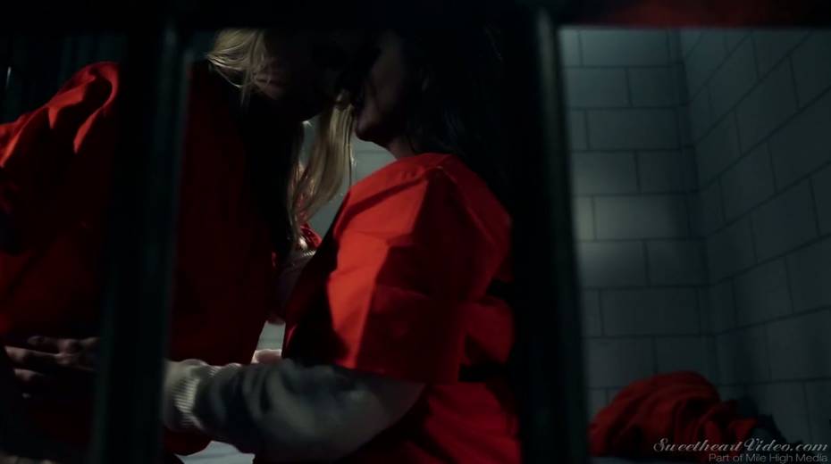 Blond babe Sarah Vandella is licking pussy of sex-appeal cellmate