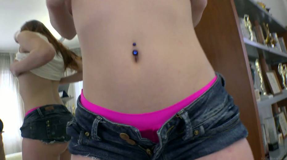 Red haired chick Charlie Red tries to cope with thick Rocco's dick
