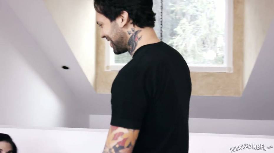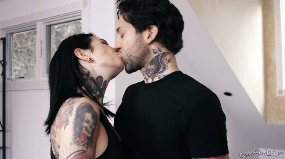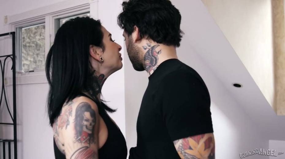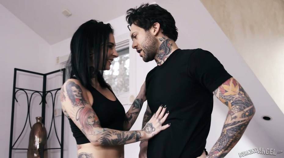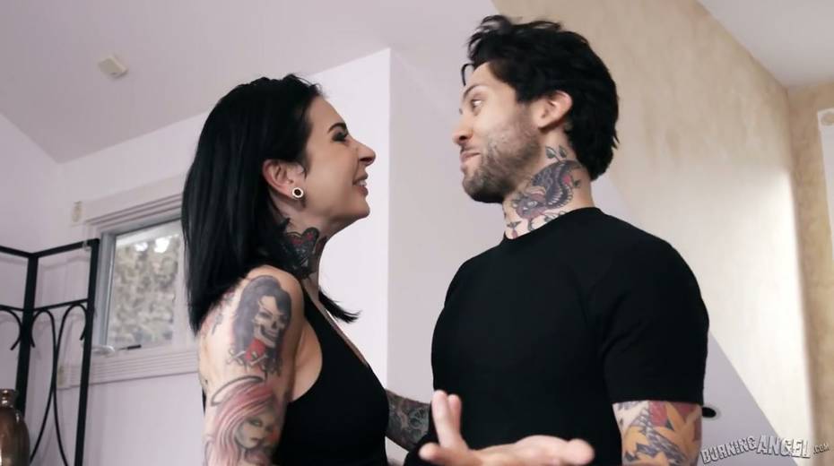 Tattooed whore Joanna Angel gives her head and gets her slit stretched