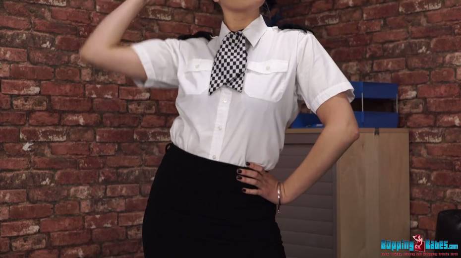 English policewoman Ashley Jayne takes off uniform and shows striptease