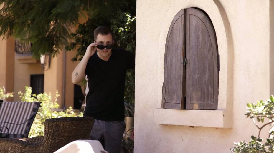 Step brother caught Adriana Angel masturbating her pussy by the poolside