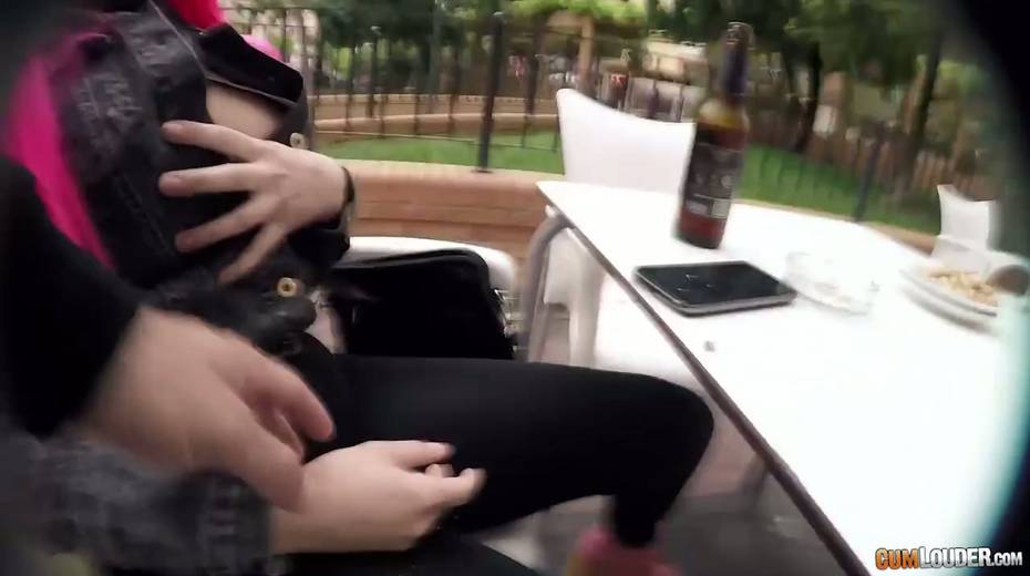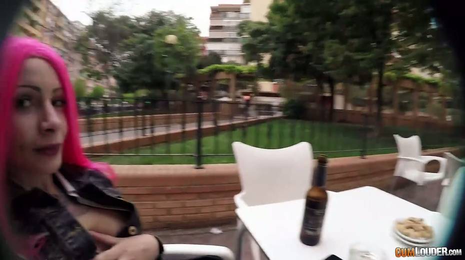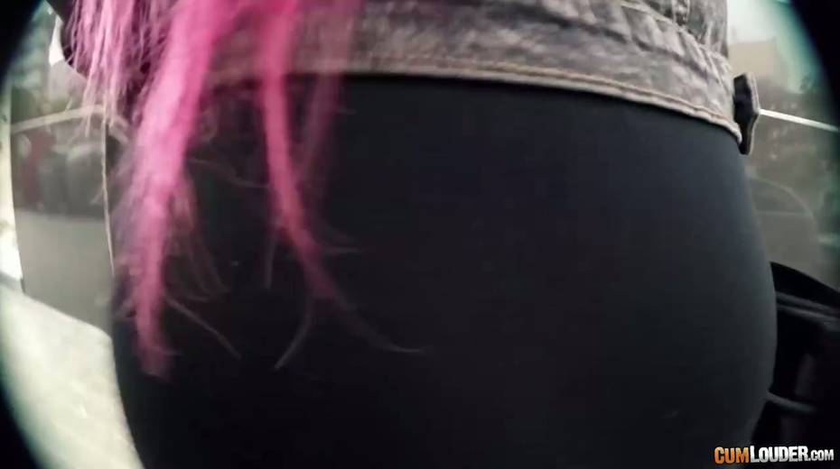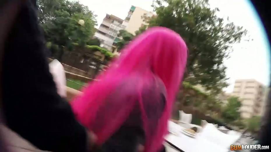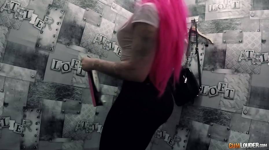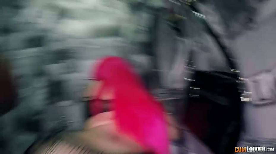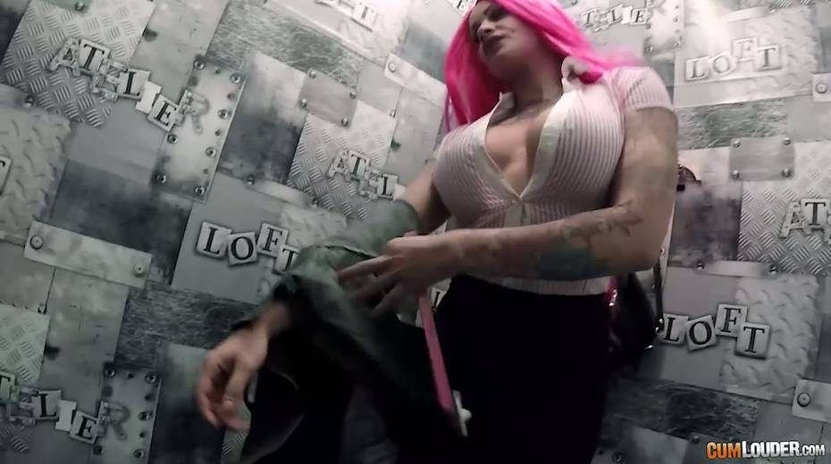 Pink haired floozy with fake boobs Barbie Bi gets fucked in the closet