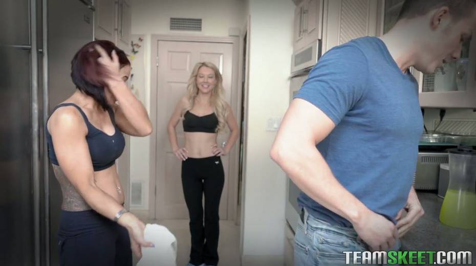 Cougar Farrah Dahl and her sport girlfriends fuck one handsome fitness instructor