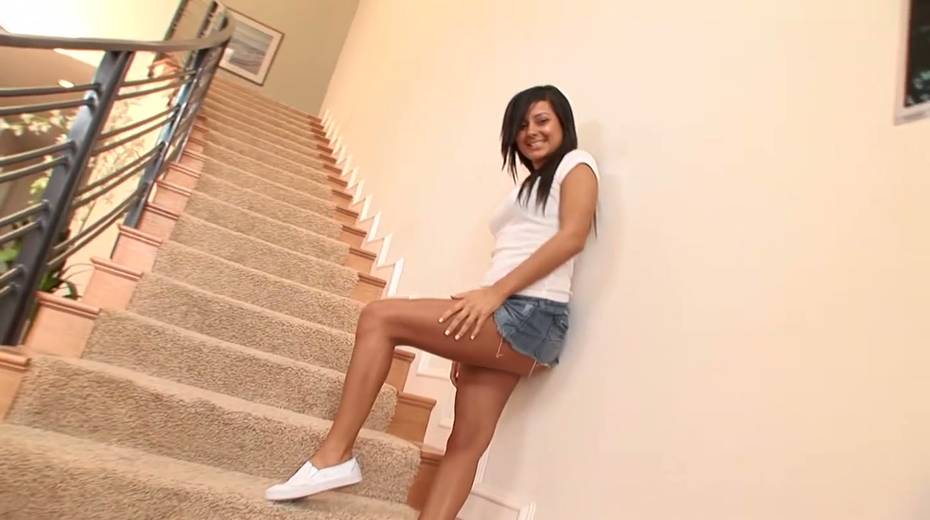 Slim girlfriend Samira Kiss is fucked by hot blooded dude on the stairs