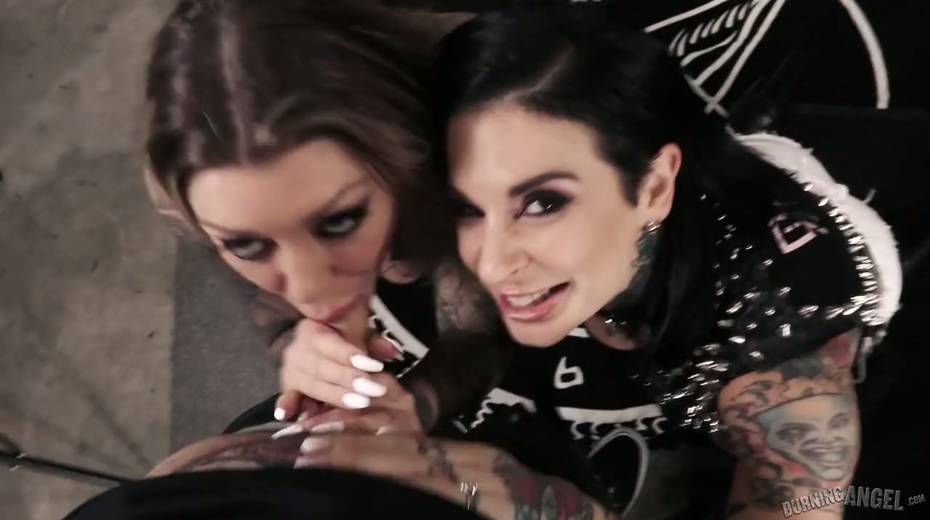 Tattooed hooker Karma Rx and her nasty GF are fucked by one kinky dude