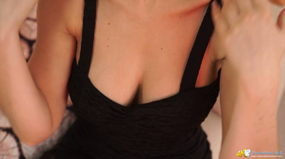 Yummy tits of sex-appeal babe in short dress Katie Louise