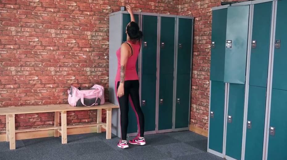 Sport nude chick Kelli Smith is bopping in the locker room
