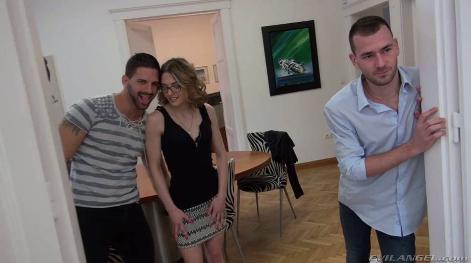 French babe in glasses Rachel Adjani is fucked by two dudes